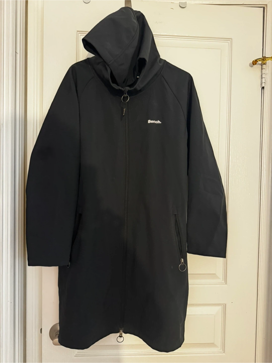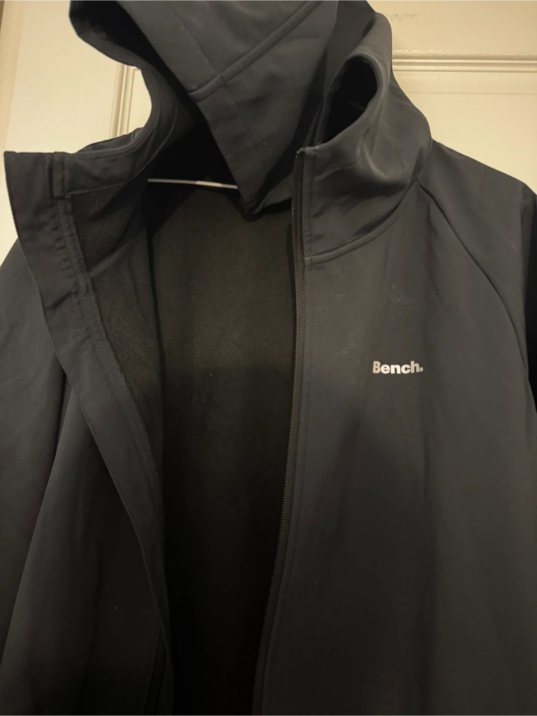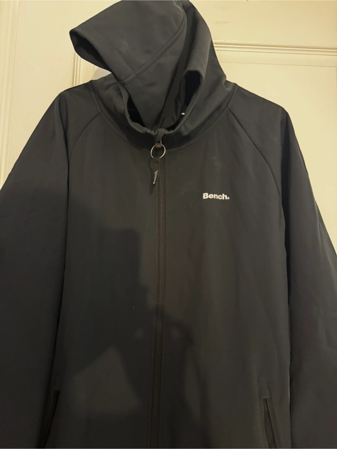 Waterproof black softshell jacket from Bench. It's in great condition and ready for a new home! Perfect for layering or wearing on its own during those mild weather days Us women’s large Men’s medium Like new $30 Yonge and finch area