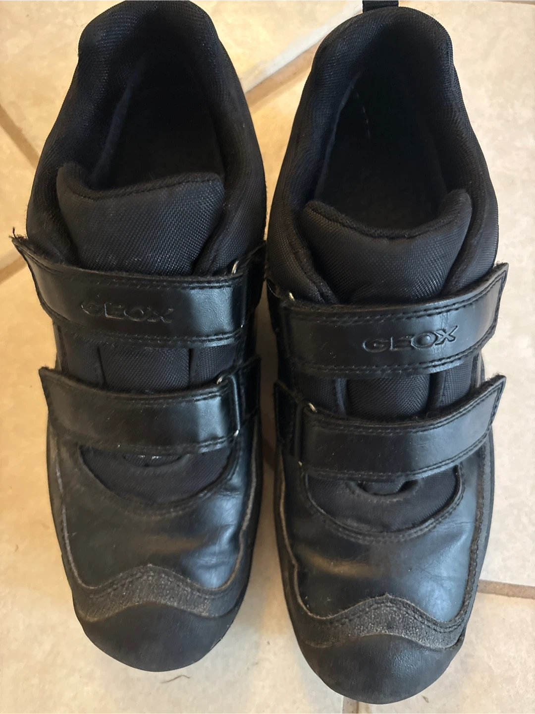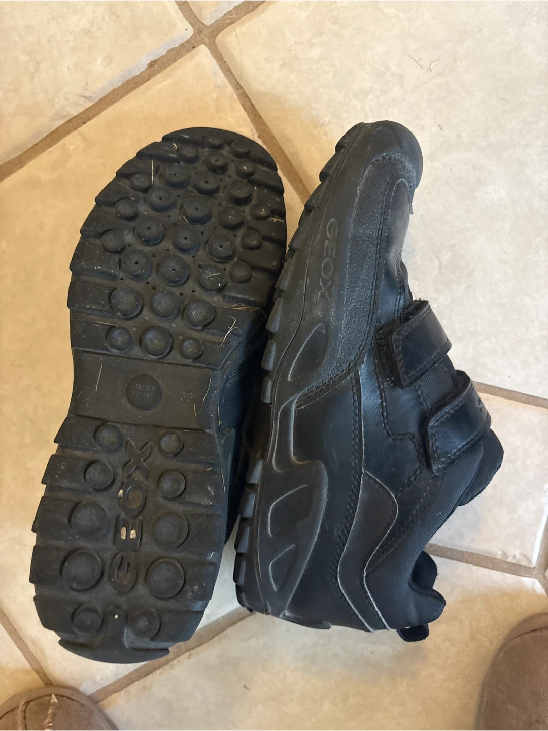 Selling a pair of Geox black leather sneakers in US size 6. They're in very good condition and ready for a new home! Sturdy, waterproof. The perfect uniform shoe or for everyday wear.