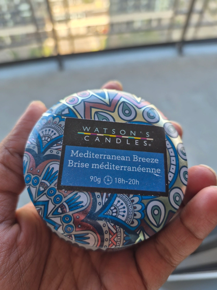 Selling a Watson's Candles Mediterranean Breeze candle. It's 90g and has a burn time of 18-20 hours. This candle would be perfect for creating a relaxing atmosphere in your home
