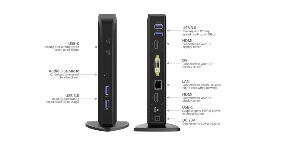 Pickup at Richmond. Featuring an impressive 13-in-1 port that allows you to connect from your host computer to this dock via a single USB C-C connection, and gives you up to triple video outputs, Gigabit Ethernet, 3.5mm audio/microphone jack, 4 USB 3.0-A ports, and 2 USB 3.0-C ports. Its high performance and sleek design make it the perfect solution for your home or office workstation. Let me know if you're interested!