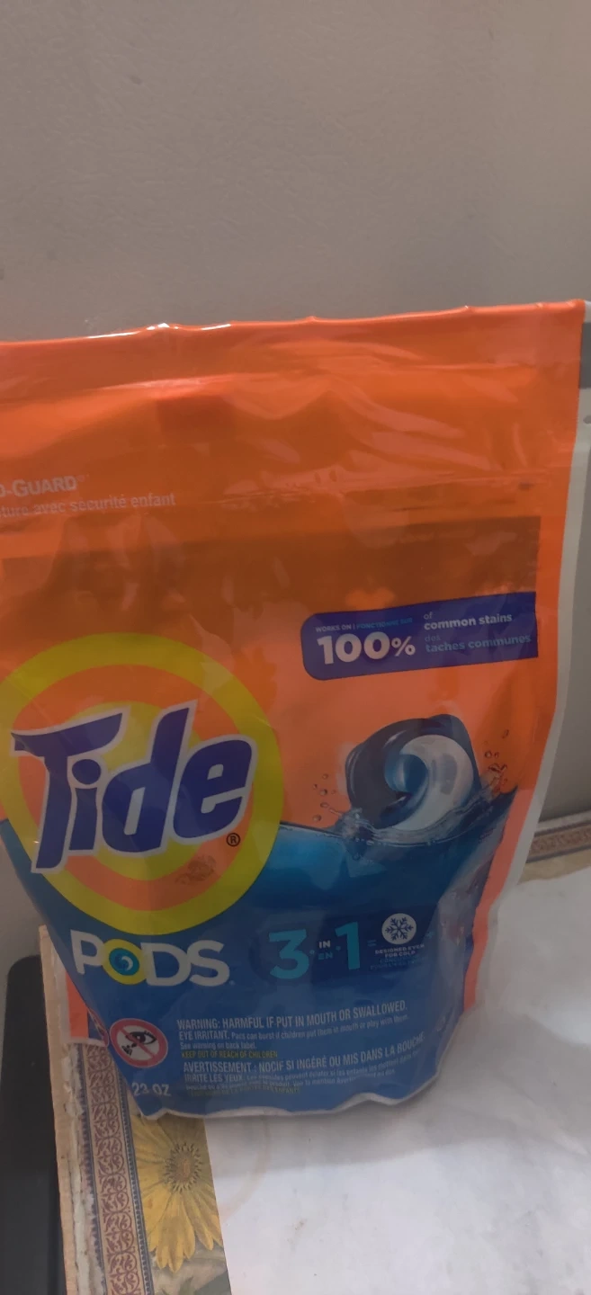 Tide Pods 3-in-1 laundry detergent packs make laundry day easier. This package contains 31 loads. It effectively cleans clothes and tackles common stains.