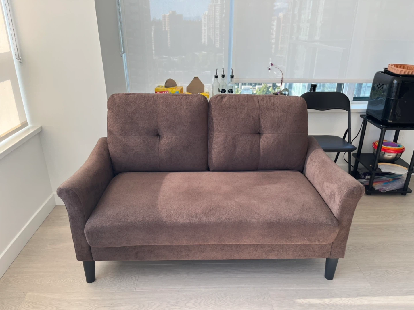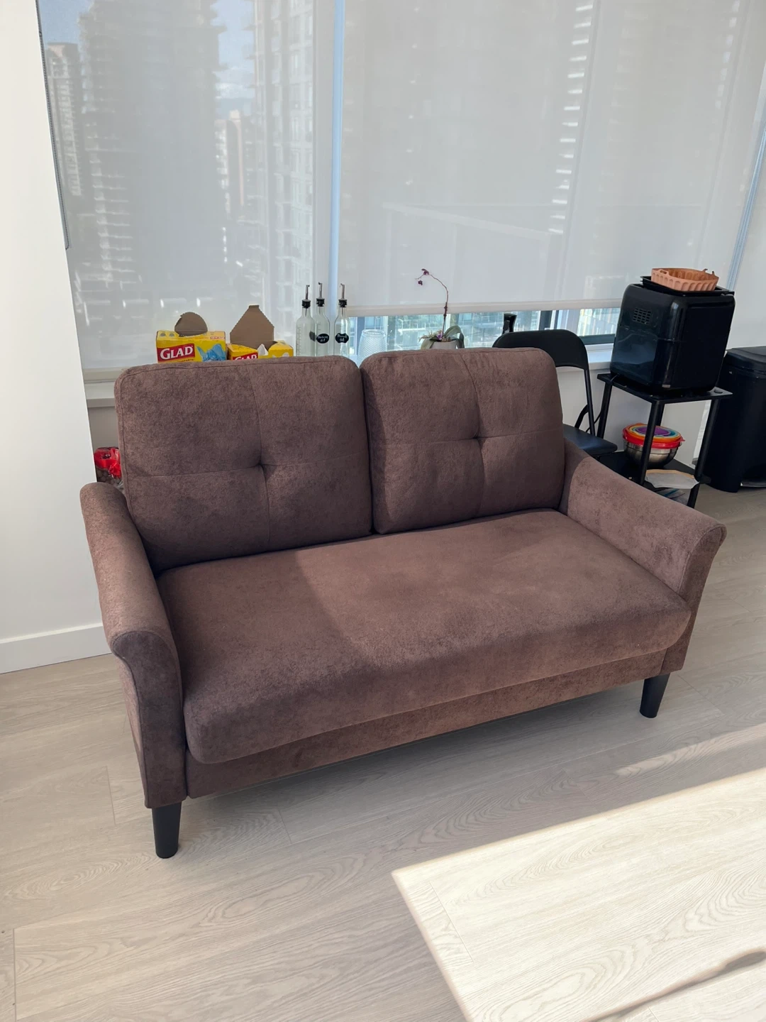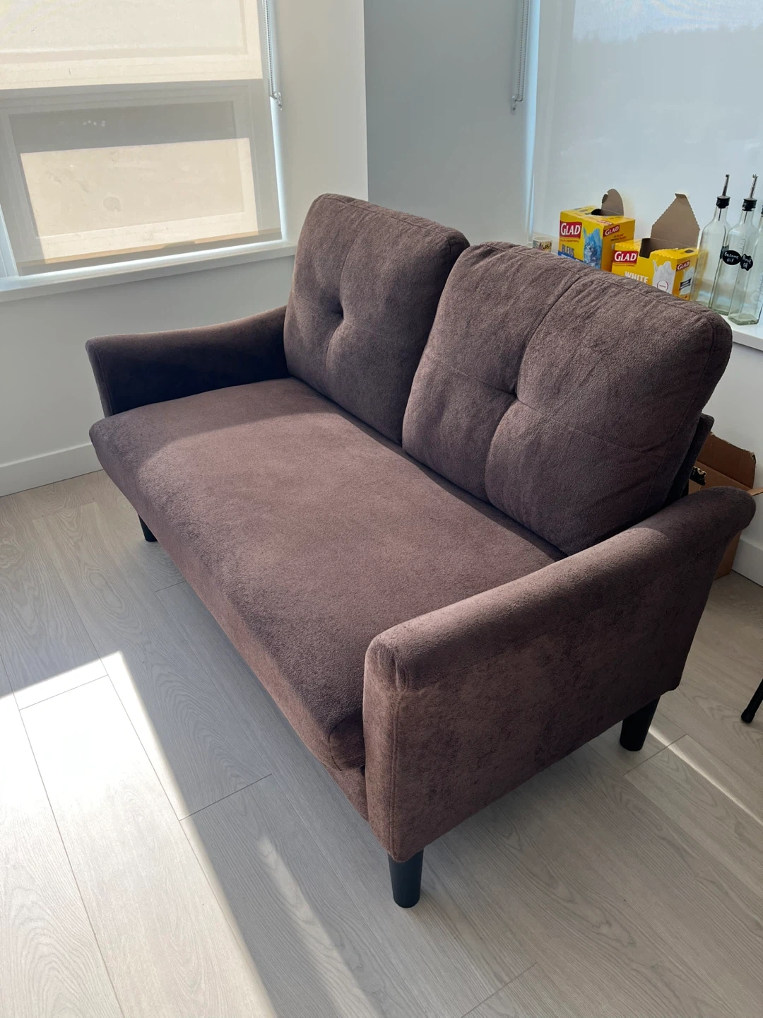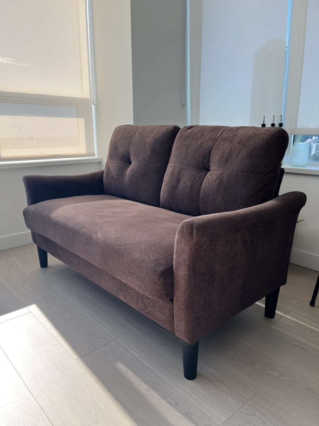 Selling a cozy brown loveseat sofa. It's in great condition and would be perfect for a small space or apartment. The colour is a nice neutral brown that would match any decor. It's a comfortable spot to relax and watch TV! https://www.wayfair.ca/furniture/pdp/winston-porter-pontheugh-loveseat-c111386988.html?piid=752522368