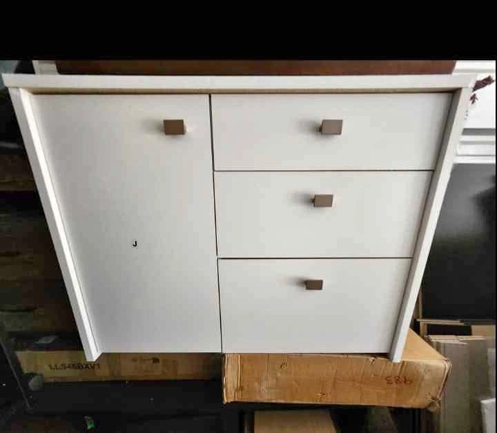 This is a great little office cabinet strong with file drawer. Unit has a few dings as shown in pic above but all n all this unit is clean and assembled. Quick sale at 150 bucks all in price. Save off retail of 429.00