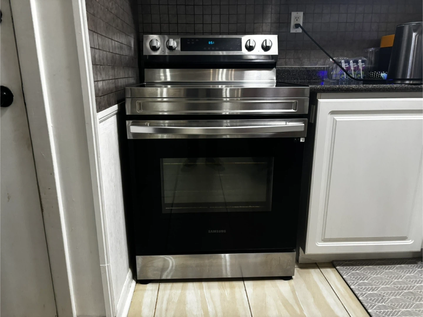 Selling a Samsung electric range in stainless steel. It's in good condition and ready for a new kitchen. Features a smooth cooktop and a spacious oven. Perfect for all your cooking needs!