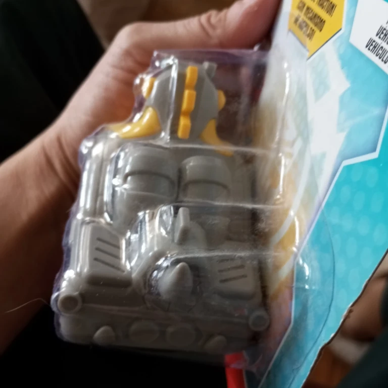 This Transformers Rescue Bots Academy vehicle features pull-back action. It's designed for kids aged 3 and up. The vehicle is grey and yellow.