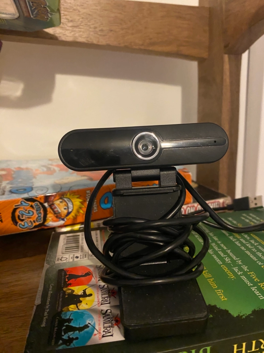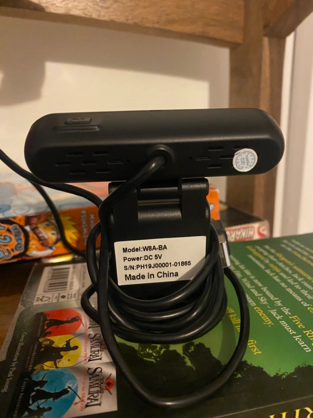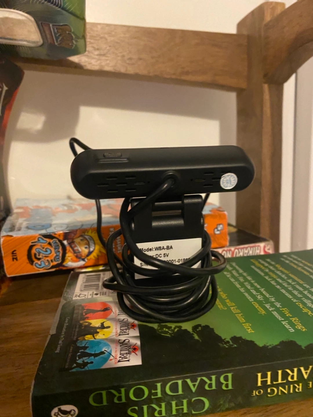 Black webcam. USB connection. Includes cord. Model: WBA-BA.
