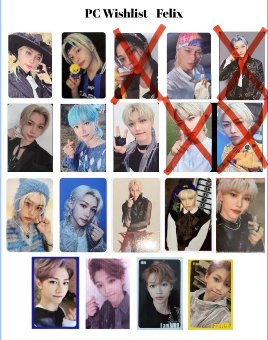 I’m looking to trade these photo cards for any other Stray Kids photo cards. I’m am primarily looking for Felix pcs but will trade for any member - I have added my wish lists but will still trade for cards not included on them.