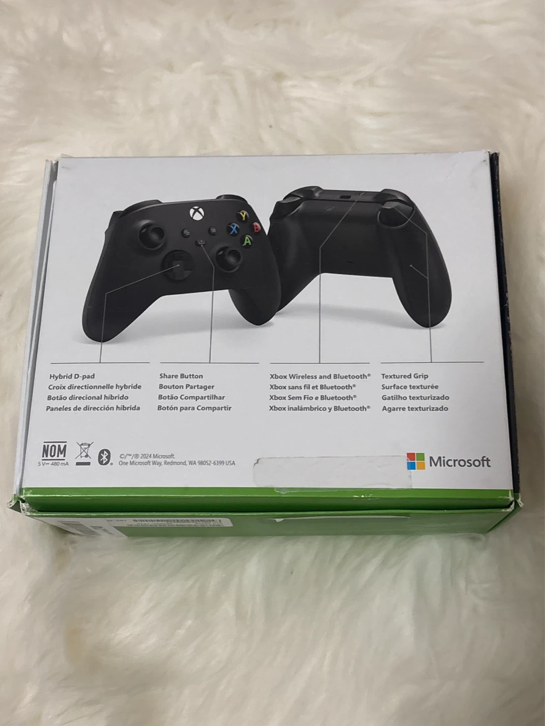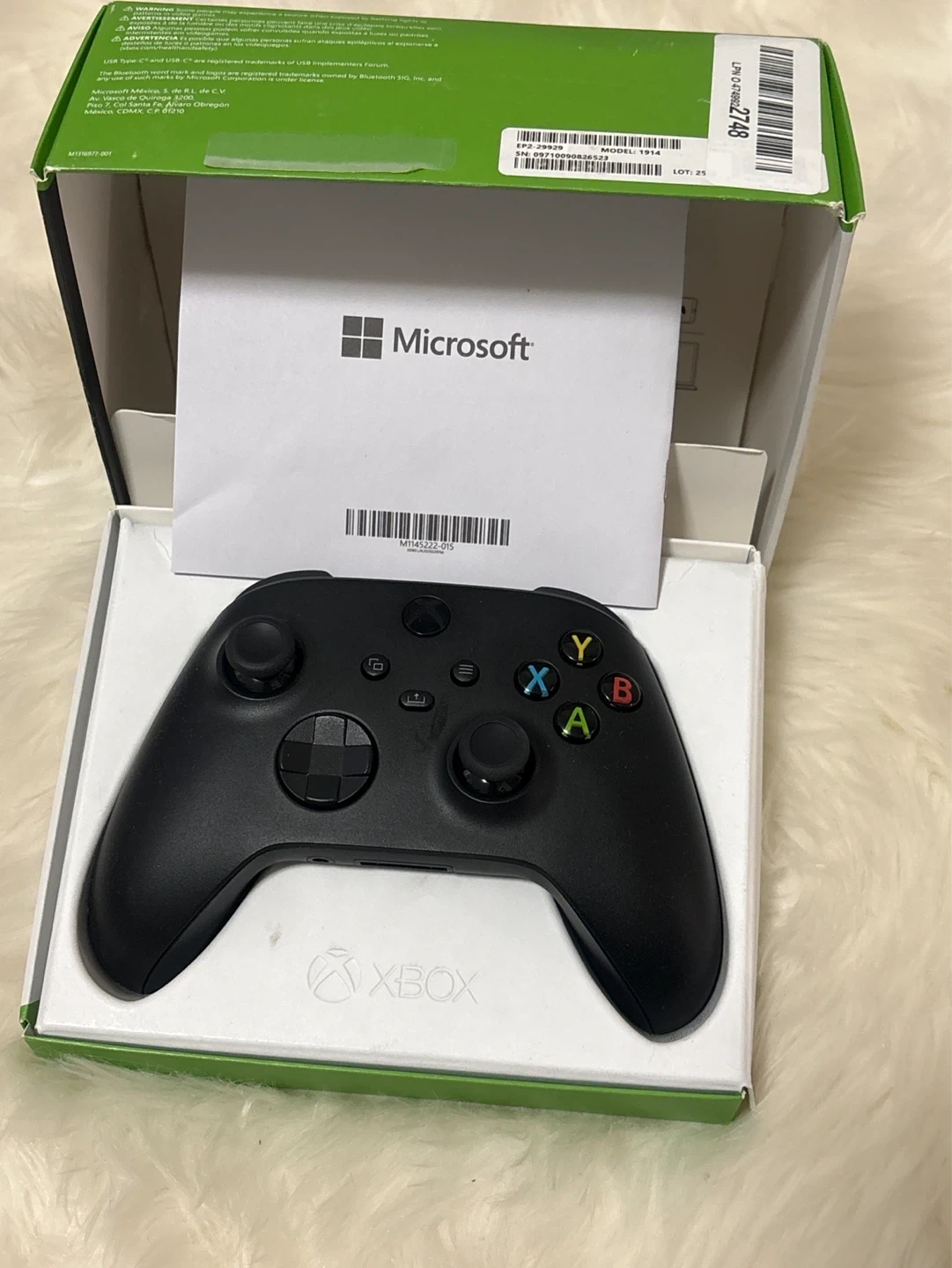 This is a Microsoft Xbox Wireless Controller in Carbon Black. It features a hybrid D-pad, share button, and textured grip. It's also Xbox Wireless and Bluetooth compatible. Includes original box.