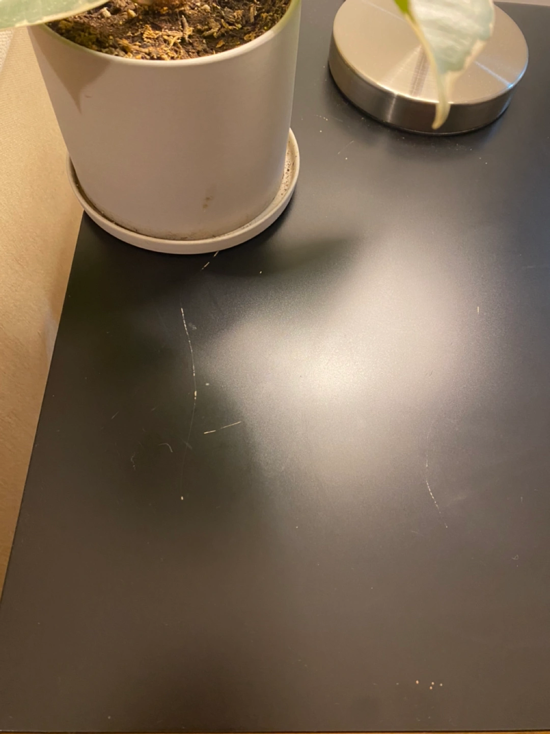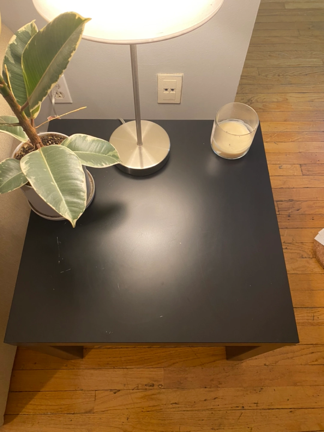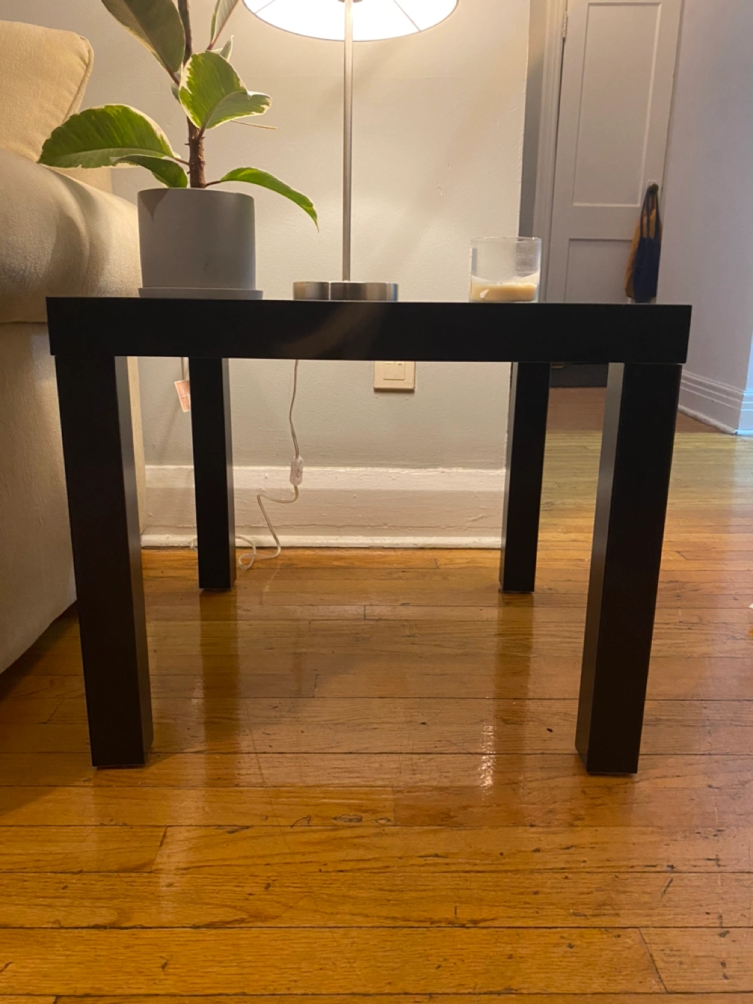 Black Ikea lack coffee table pre assembled. Has a scratch on it from a plant pot, but can easily be fixed with a sharpie or paint.