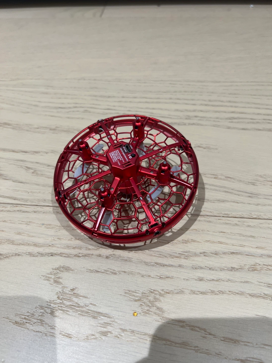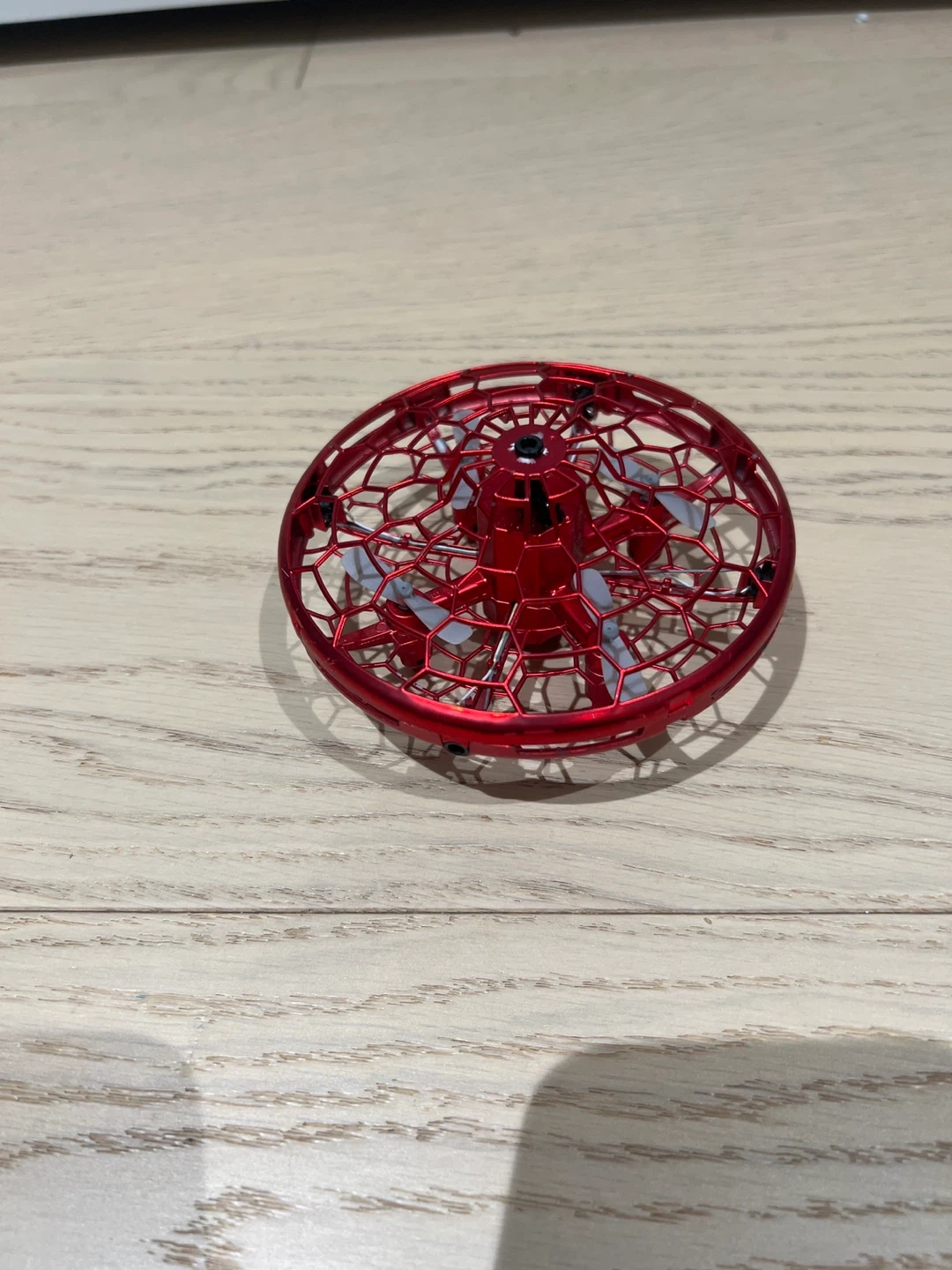 This cool red flying ball toy drone is ready for a new home! It's lightweight and portable, making it easy to take anywhere. Perfect for some fun indoor or outdoor play