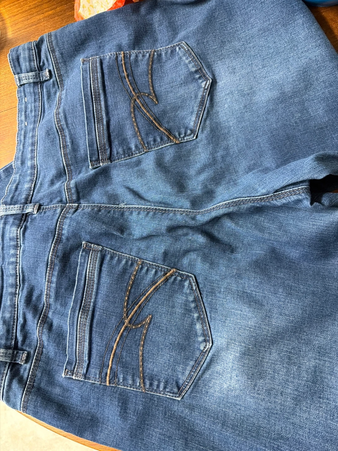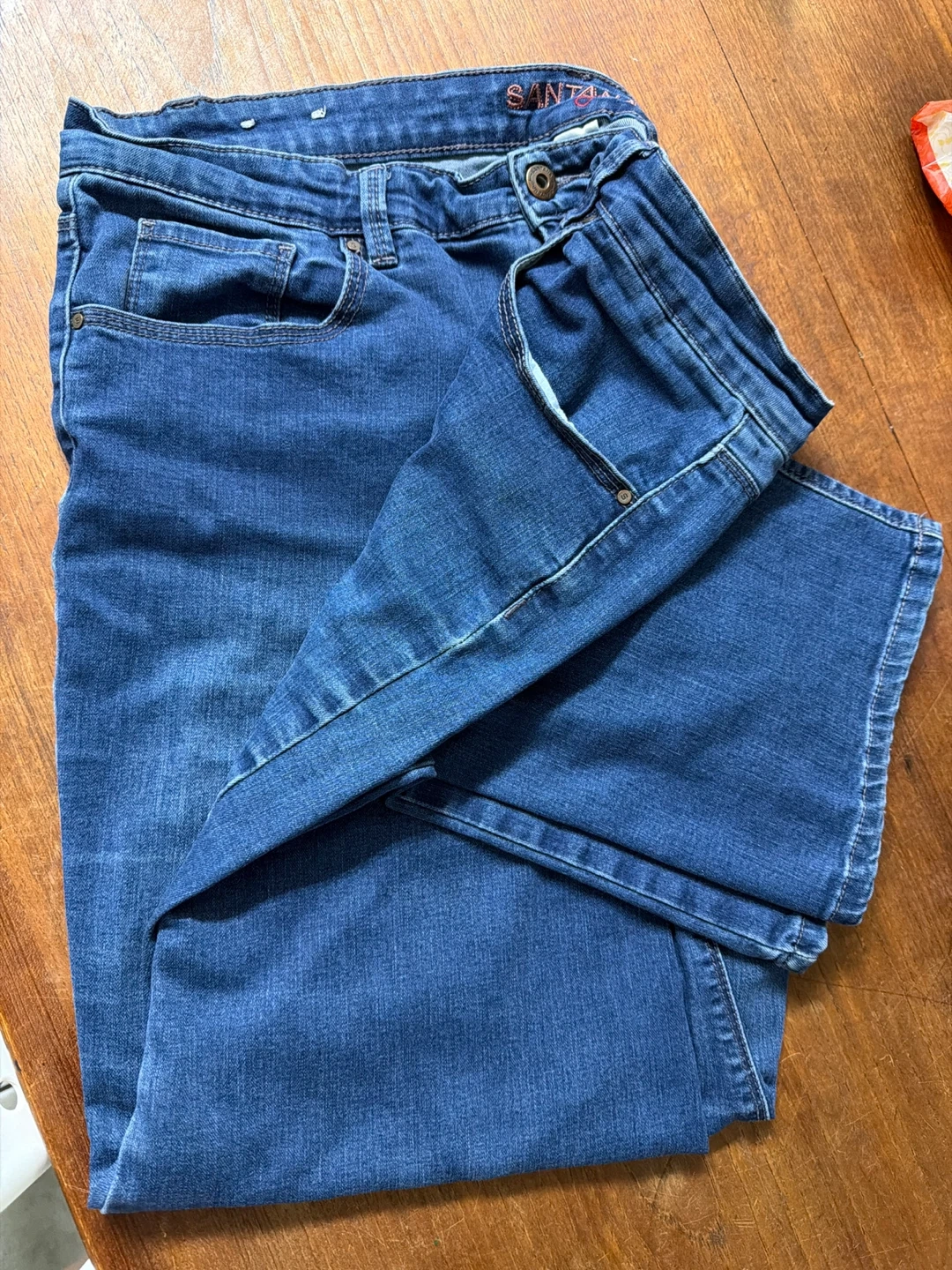 These Santana Jeans are a classic blue denim. They're made with a blend of cotton, polyester, rayon, and spandex for comfort and stretch. Size 14x30.