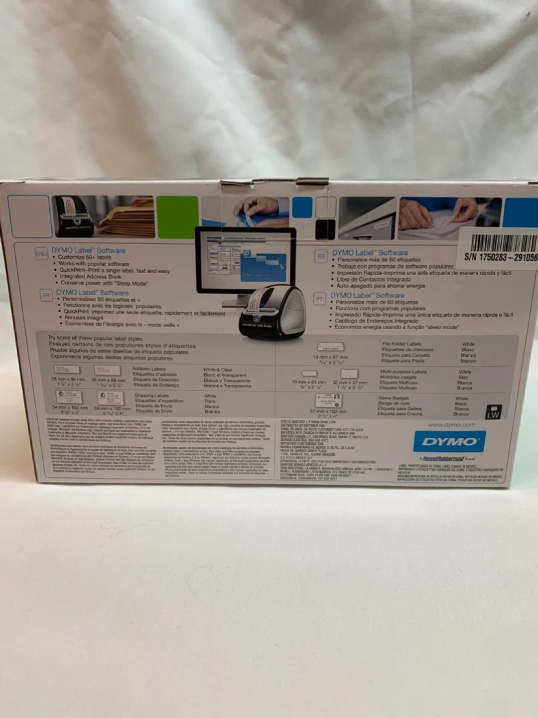 High-speed label printer for PC and Mac. Prints up to 71 labels per minute. Includes Dymo Label Software. Black and silver design. Brand new in package.