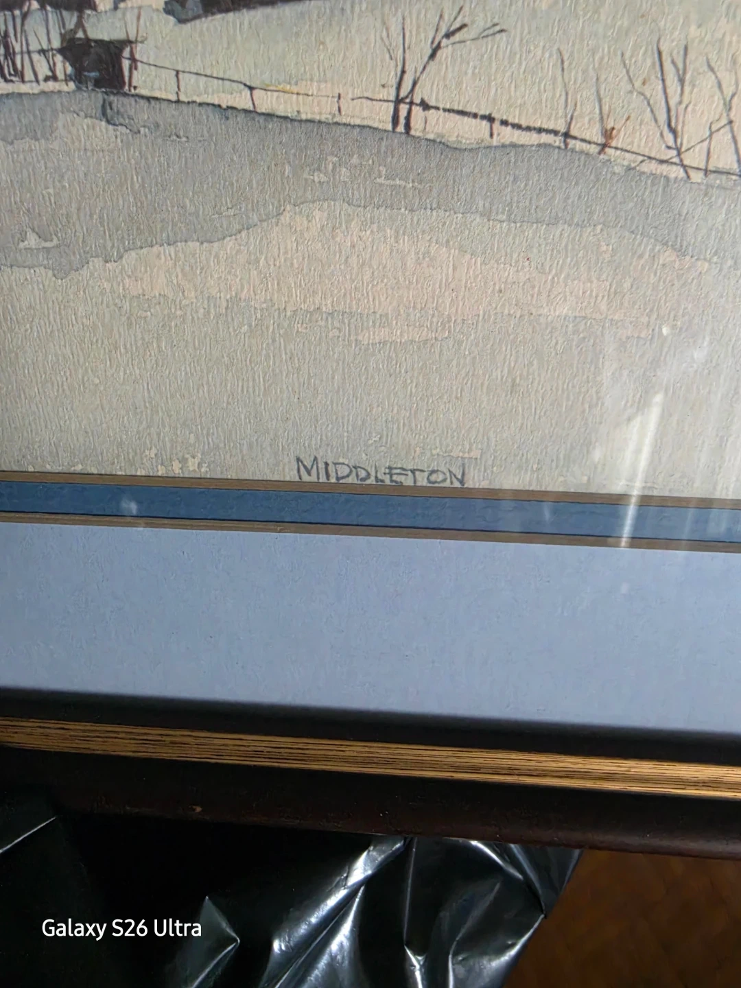 Framed Winter Landscape Watercolor Painting by Middleton
