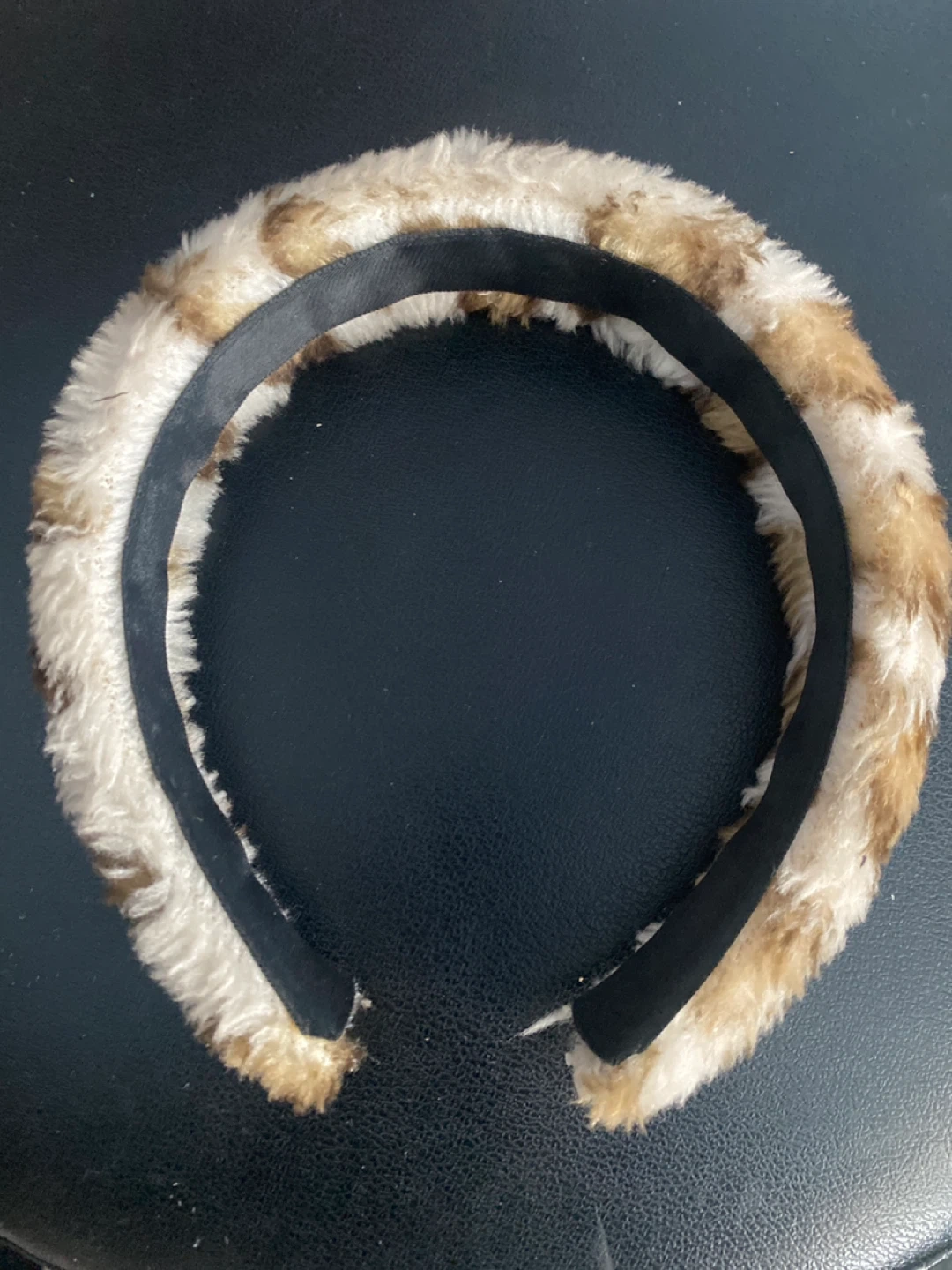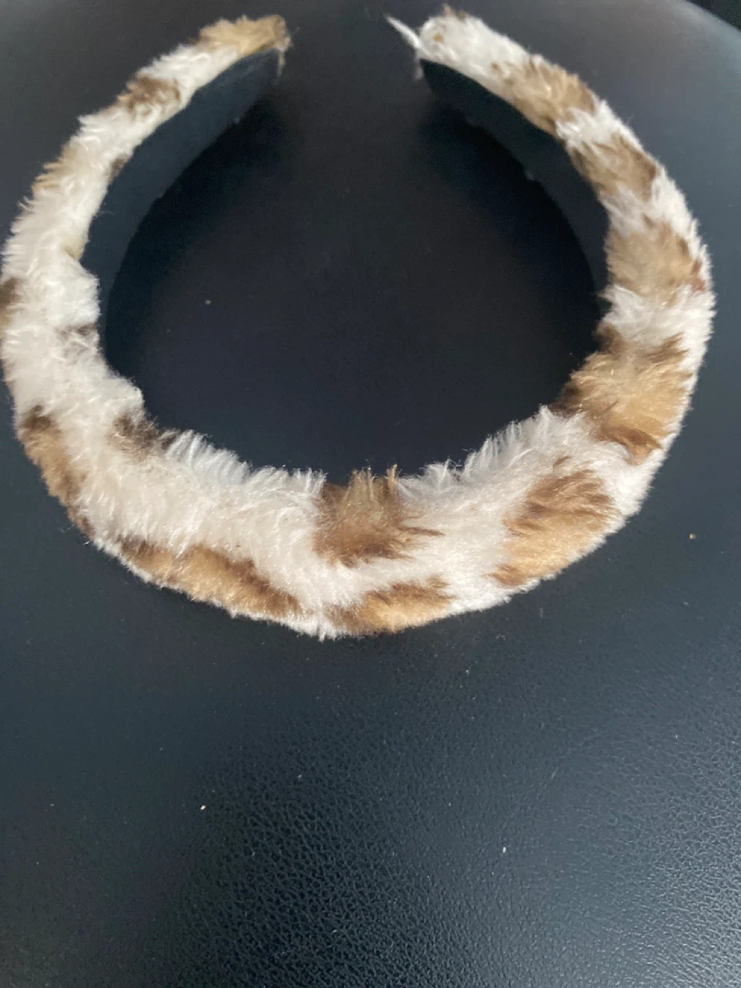 This fuzzy headband has a fun leopard print pattern. It's made with a soft faux fur material. It has a diameter of 5 inches. This accessory is great for adding a bit of flair to your look!
