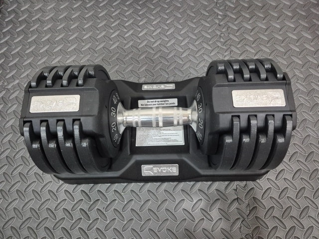 A versatile training tool for at-home sweat sessions, this EVOKE Adjustable Dumbbell is equipped with quick and easy weight adjustments—simply twist the handle to select your desired weight. Only the weight increments you choose will stay on the handle, while the others will remain in the docking tray.