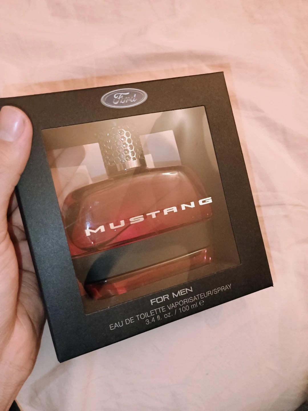 Selling a bottle of Mustang Red Eau de Toilette for men! It's a 3.4 fl oz (100 ml) bottle. The fragrance is driven by notes of Lemon Zest, Refreshing Mint, and Warm Sandalwood, built for a man on the move. Comes in its original box