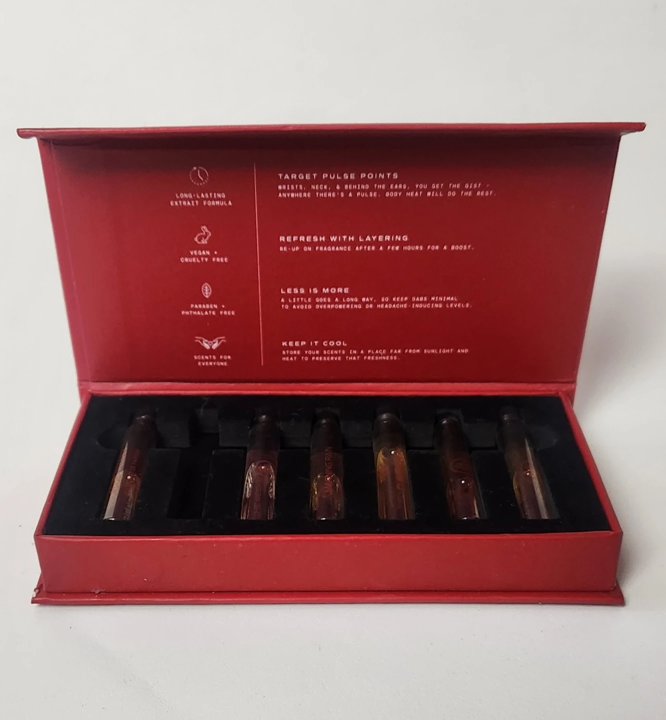 Discover Oakcha's collection of fragrances with 7 trial-size vials (2 ml each) of our extrait de parfums. Each vial has a concentration of 30 - 40% aromatic compounds, with high silage and longevity.