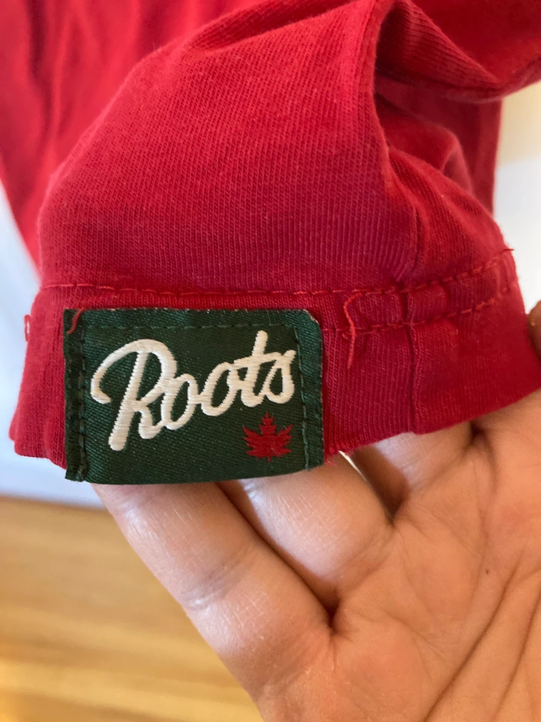 Red Roots Outfitters t-shirt with "Roots Canada The Canadian Standard" graphic. Made of 100% cotton. Size XL/TG. Perfect for casual wear!