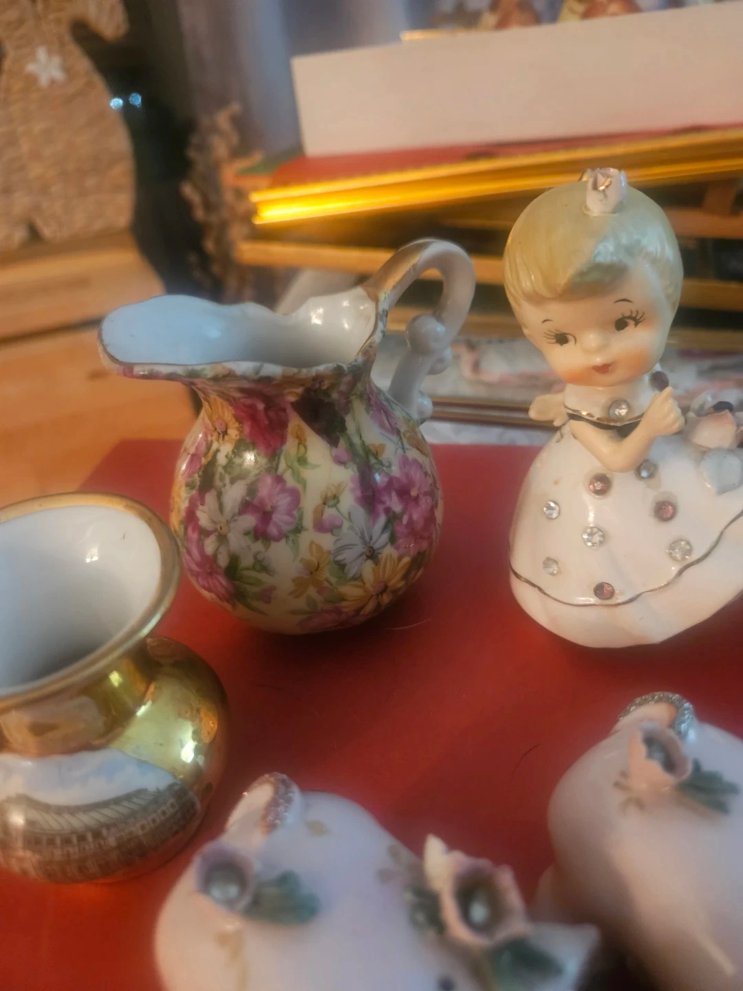 Royal Chintz Creamer Pitcher and 4 collectible figurines