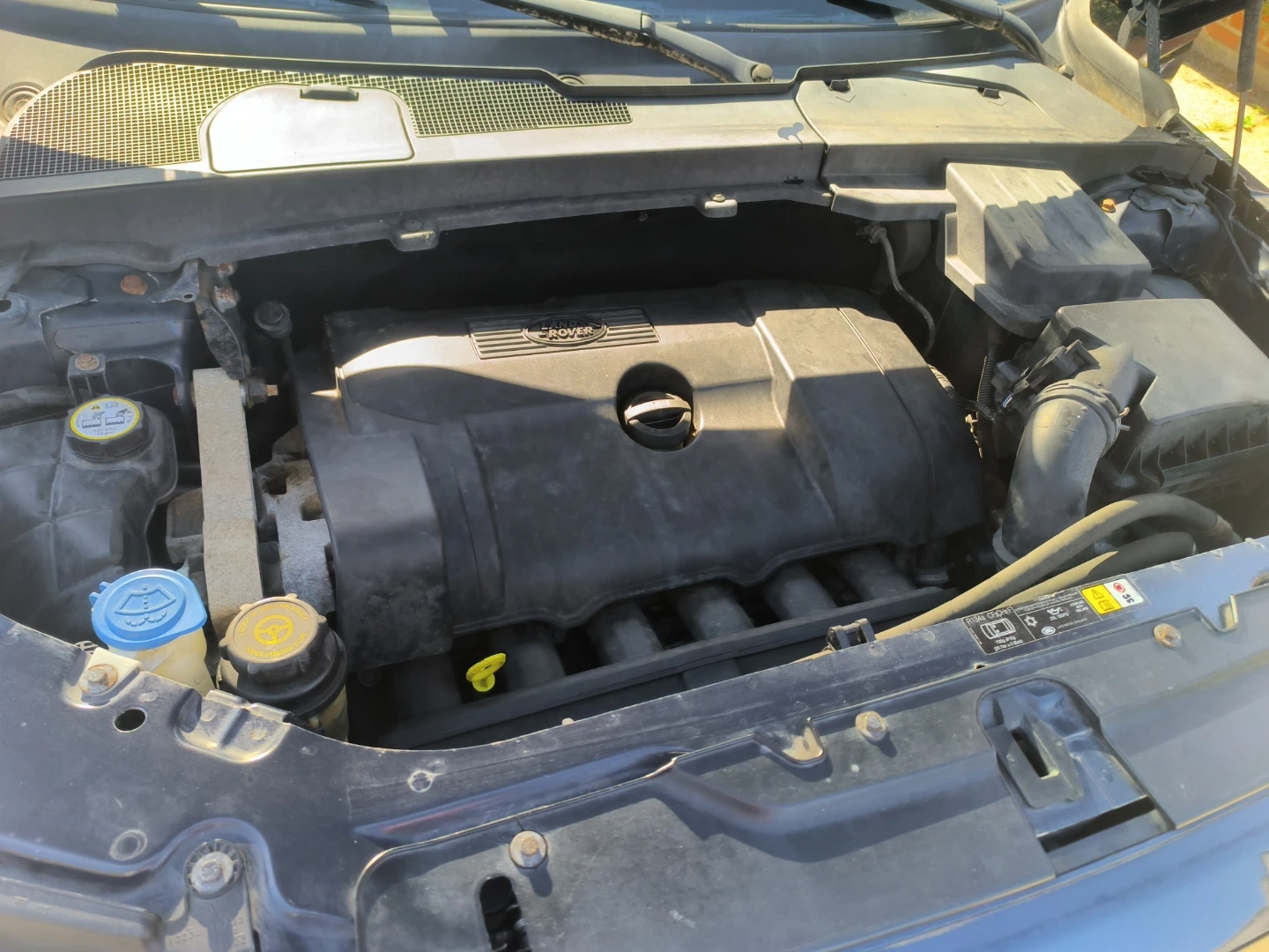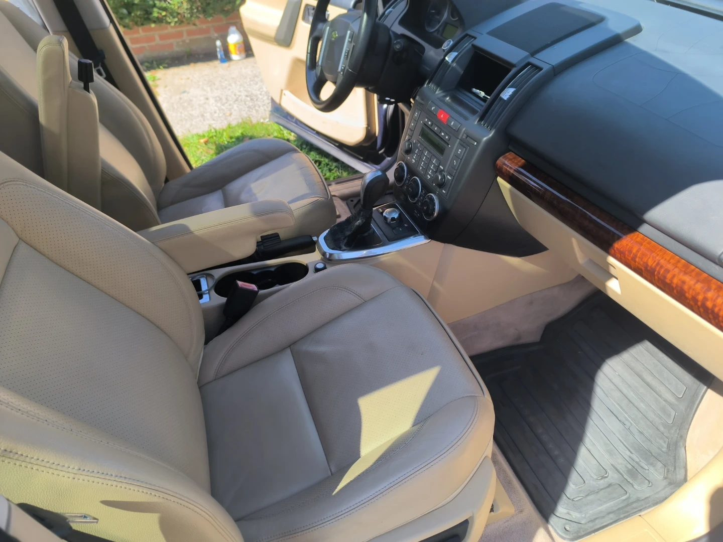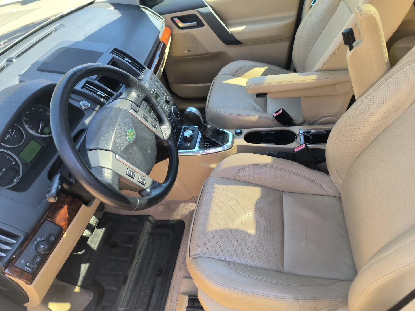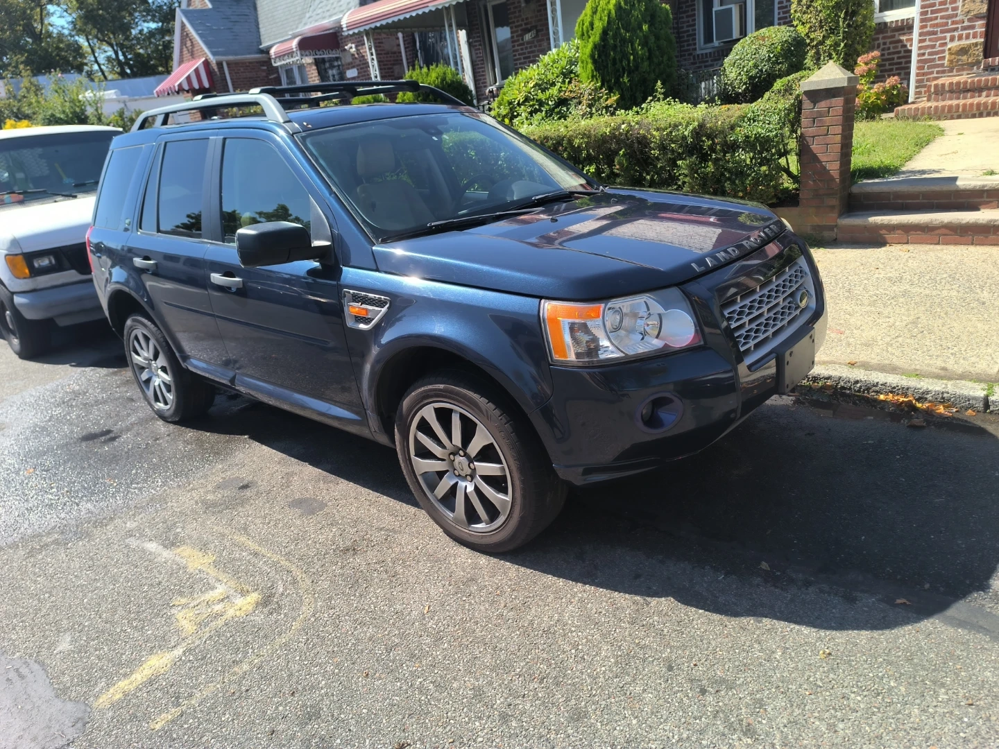 This is a blue Land Rover LR2 SUV. It has a damaged side mirror. The exterior is blue and it has roof rails. Very low miles-92k.. extra clean interior...All wheel drive SUV..