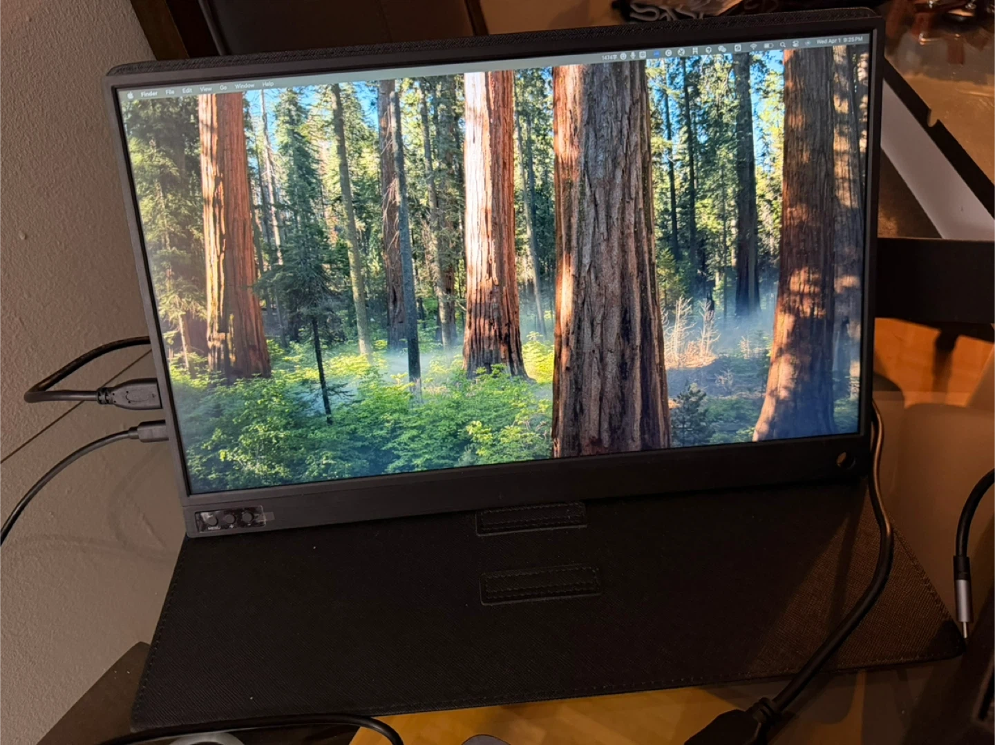 Portable 14” monitor, perfect for expanding your workspace on the go. Includes a protective fabric case for easy transport.