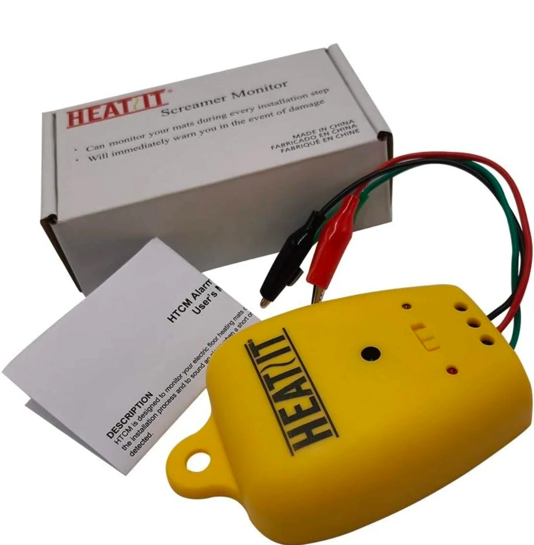 This HEAT IT screamer monitor is designed to check your electric floor heating mats during installation. It can monitor your mats during every installation step and will immediately warn you in the event of damage. It's powered by 3-24V DC.