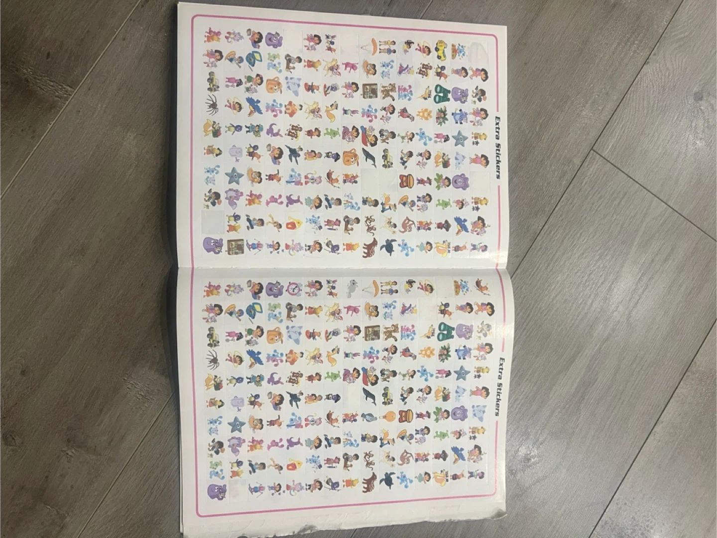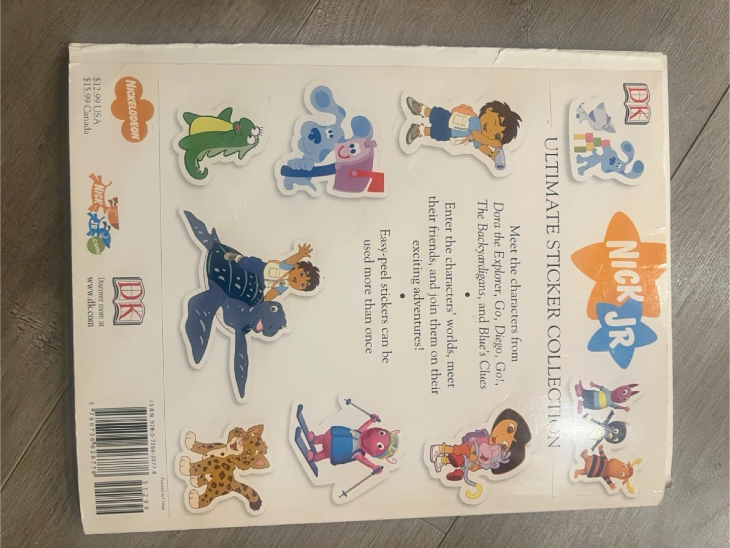 This is the Nick Jr. Ultimate Sticker Collection book from DK. It features characters from Dora the Explorer, Blue's Clues, and The Backyardigans. It has been used and contains a lot of extra full-color stickers! Perfect for young fans of these shows.