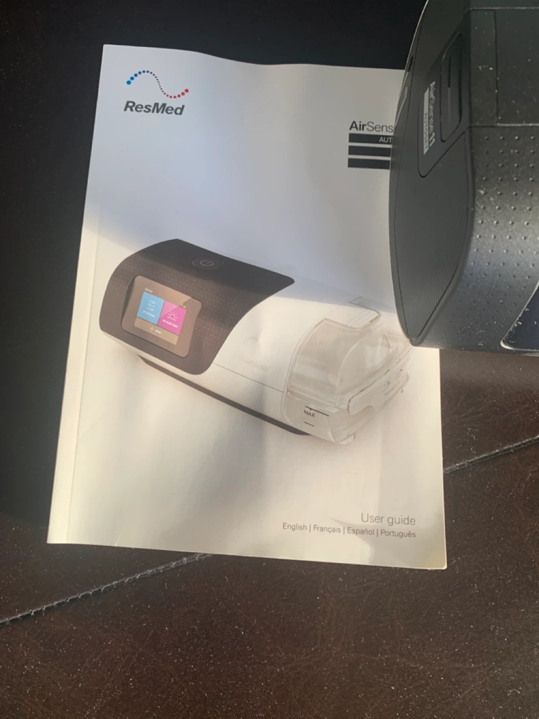 This ResMed AirSense 11 CPAP machine comes with a mask and carrying bag. It's designed for comfortable sleep apnea therapy. It includes the machine, a mask, tubing, and a user guide.