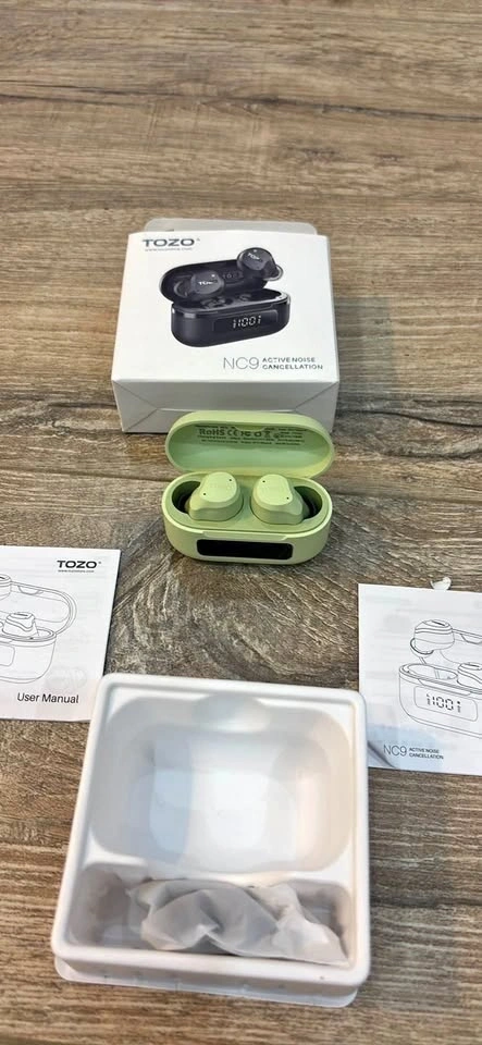 Selling a pair of brand-new, never-used TOZO NC9 Wireless Earbuds in a stylish Light Green color. These were only taken out to ensure everything works perfectly.