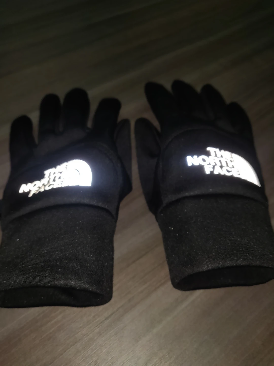 These are The North Face gloves. They feature a fleece-like material and grip on the palms. Includes a clip to keep them together. These are really good quality 1:1.
