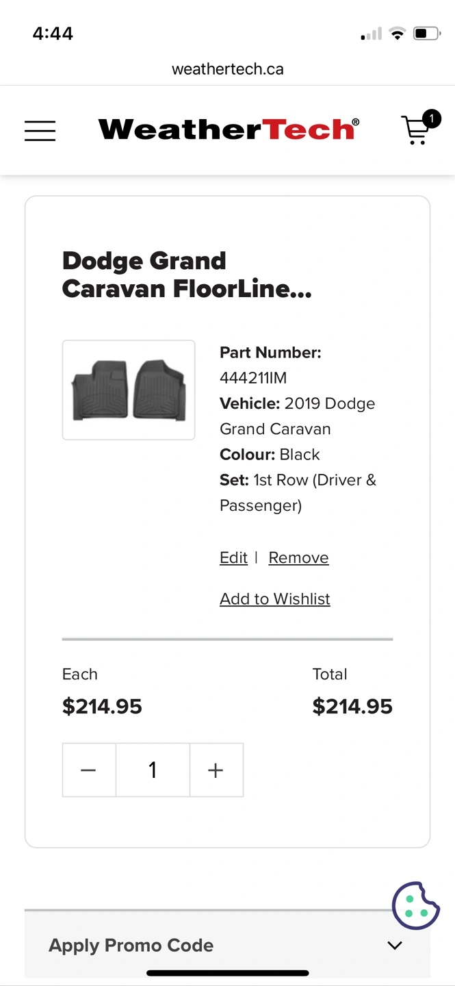 Selling a set of WeatherTech FloorLiners for a 2019 Dodge Grand Caravan. These are black and designed for the first row (driver and passenger). Originally bought for $214.95