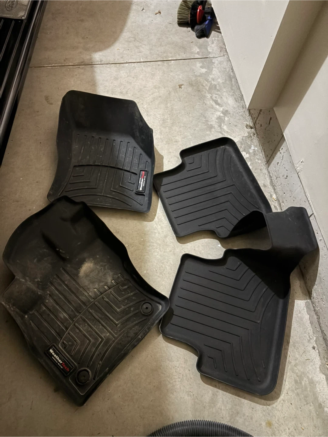 0Selling a set of WeatherTech floor mats. They're in good condition and ready to keep your car's interior clean. One of the mats shows more signs of use than the others.