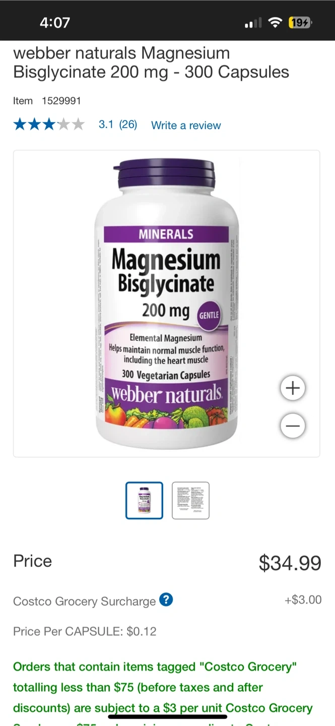 Show allWebber Naturals Magnesium Bisglycinate 200mg, 300 Capsules