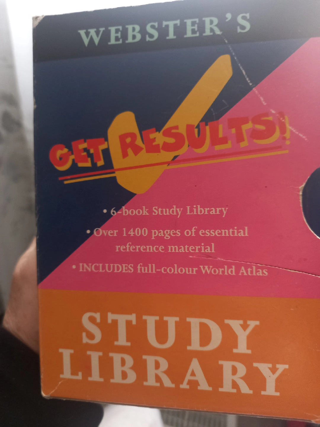 Selling a Webster's Study Library set. It includes 6 books: English Thesaurus, English Dictionary, Dictionary of Science, Atlas of the World, World Facts, and Dictionary of Grammar. Over 1400 pages of essential reference material, including a full-colour World Atlas