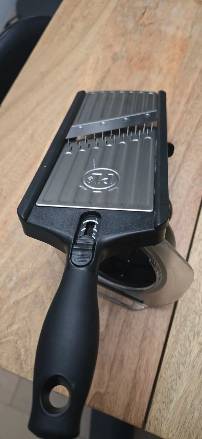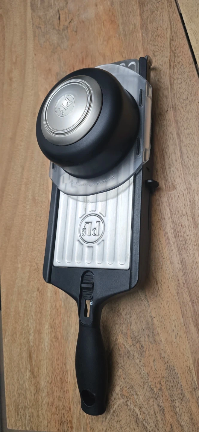 Looking to sell my PL8 Professional Mandoline Slicer. It's in great shape and ready for a new kitchen! It's perfect for slicing veggies and fruits with ease and precision, making meal prep a breeze.