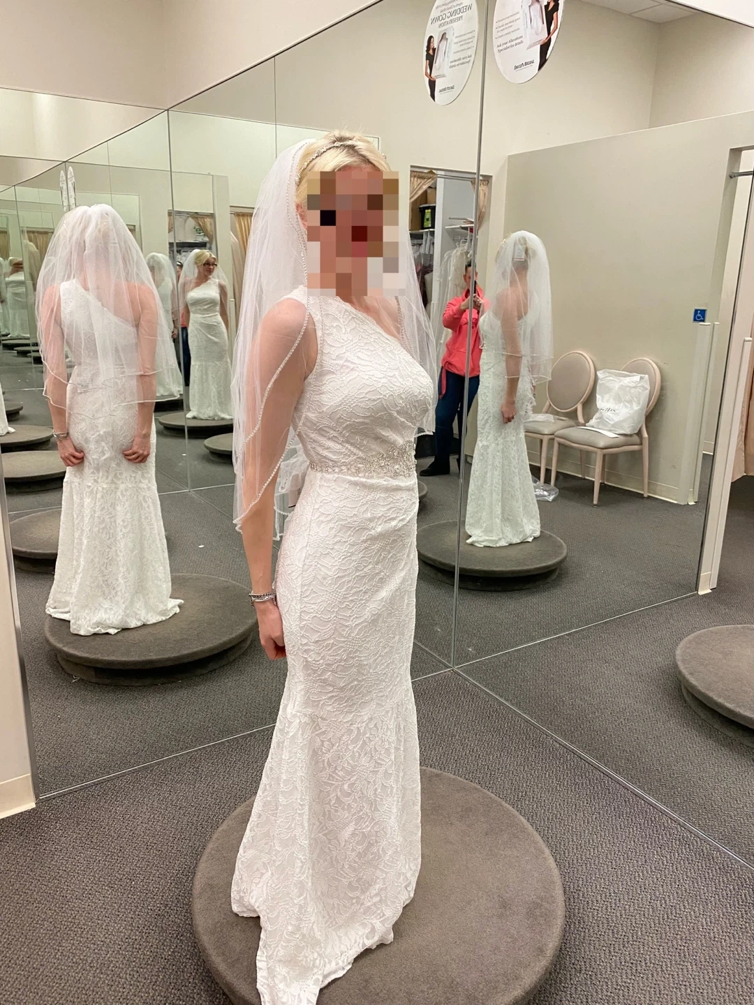 28Size 0 wedding dress never worn Brand new Comes with belt no veil Pick up Acton