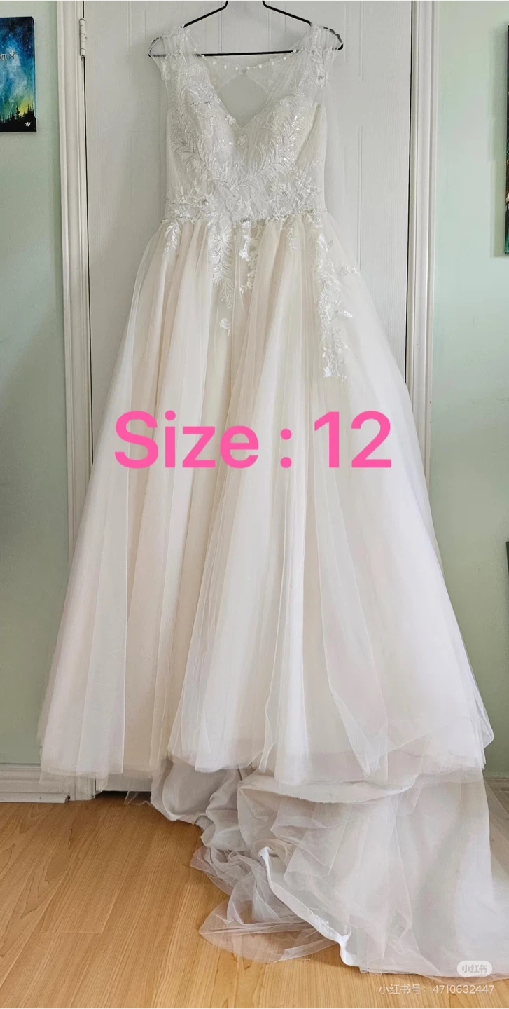 Selling a beautiful wedding dress in size 12. It's in great condition and ready for its next special day!
