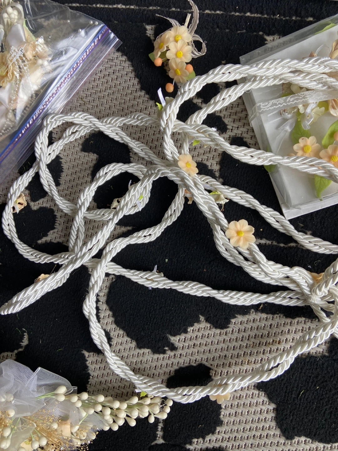 818Selling a set of wedding floral accessories. Includes a floral headpiece, a bouquet, a rope, and other floral decorations. Perfect for adding a touch of elegance to your special day!