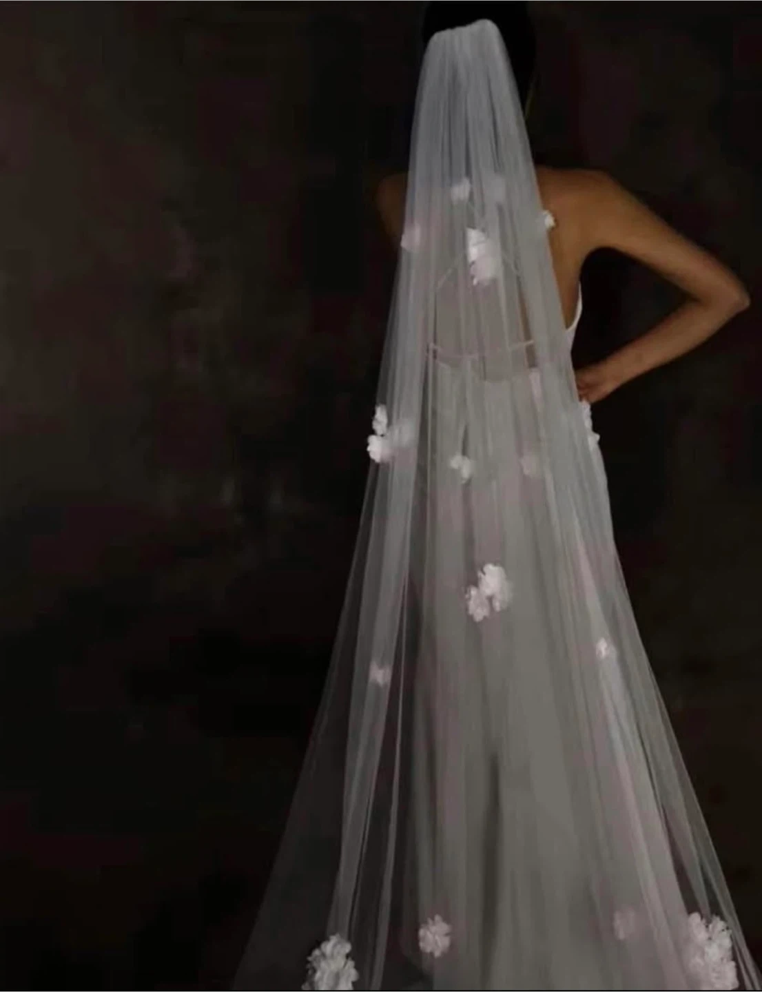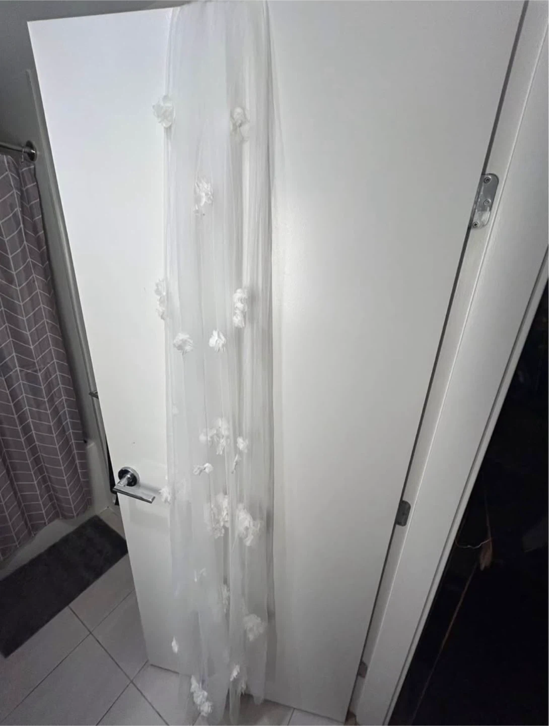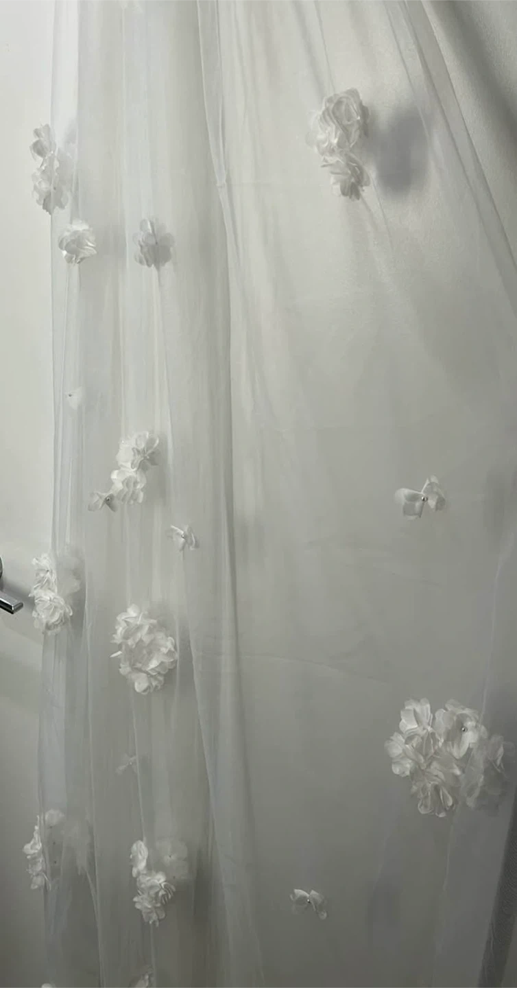 90Selling a beautiful wedding veil, adorned with delicate floral appliqués. It's in great condition and would be perfect for your special day! Pick up one min from king George Skytrain station 200cm=floor length New and flawless Retail $649