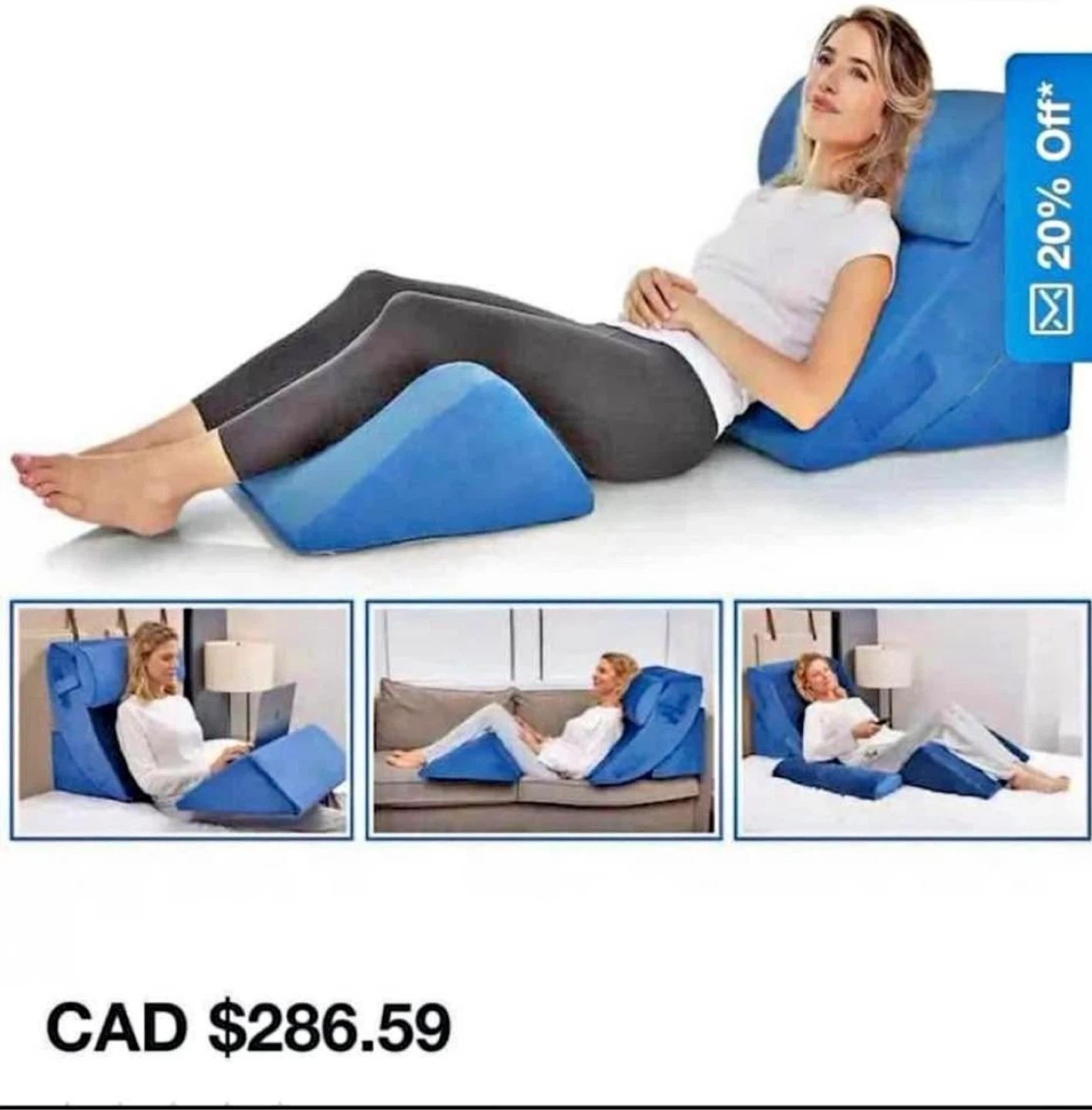 0Perfect wedge pillow set for post surgery recovery use.