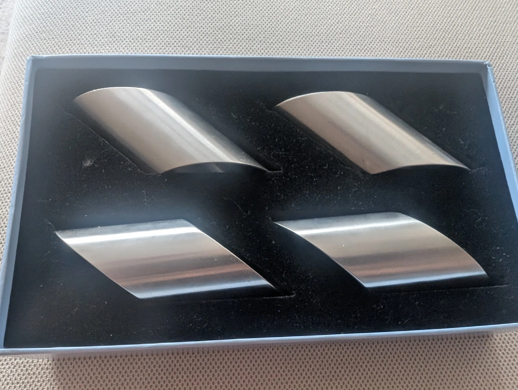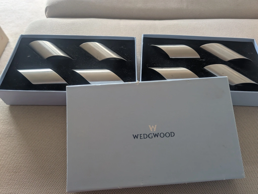 22Set of eight modern stainless steel napkin rings. Presented in Wedgwood gift boxes. Elegant and simple design. Perfect for everyday use or special occasions.