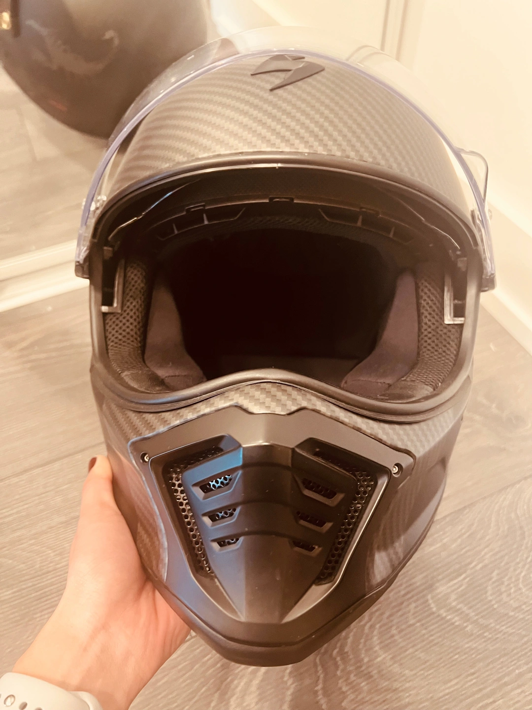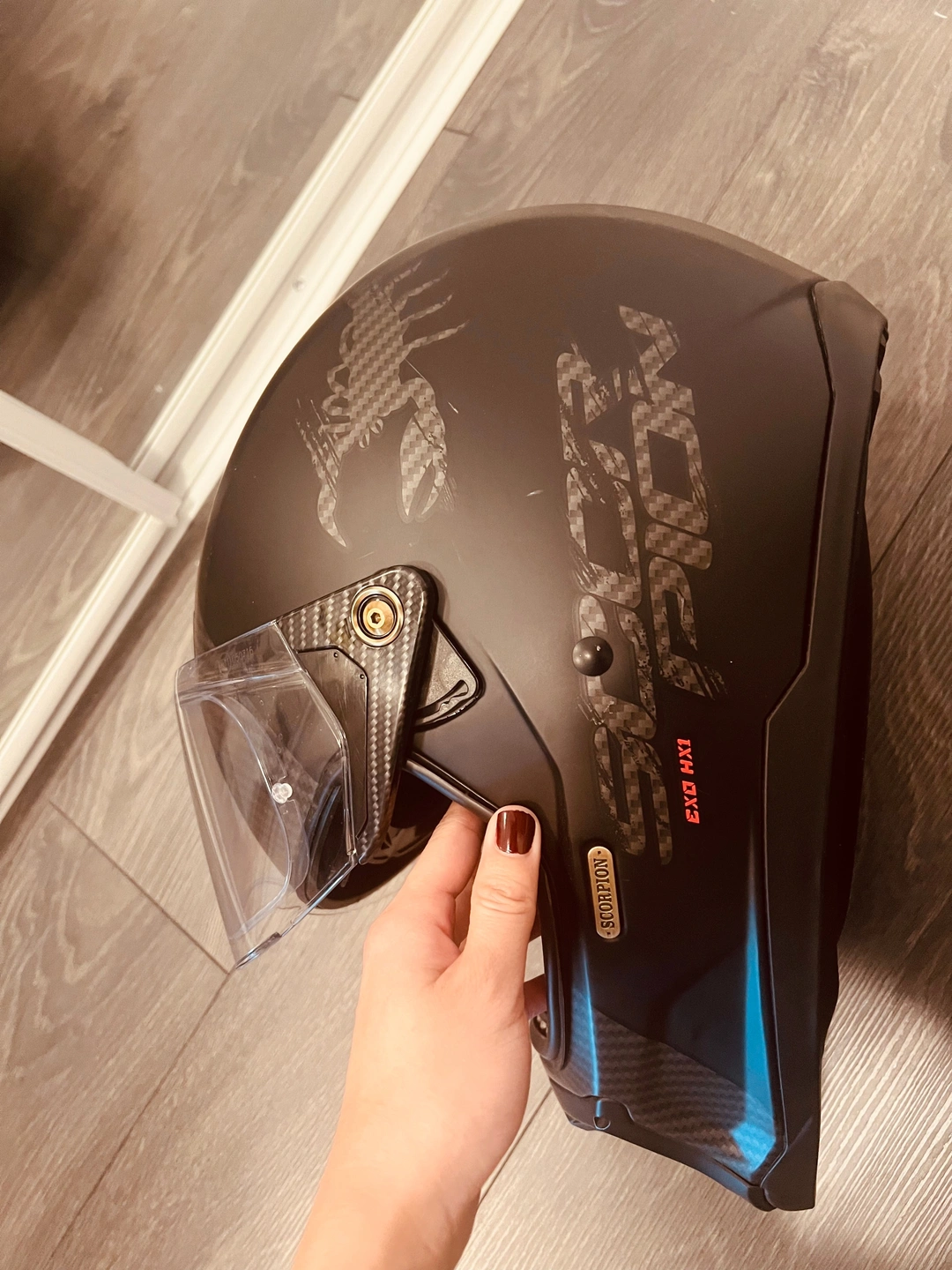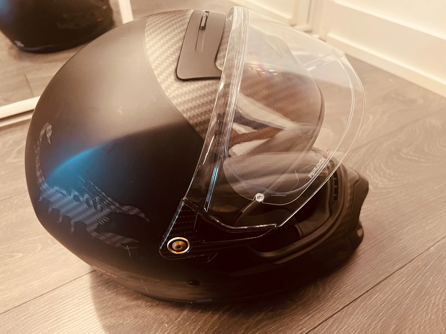 Selling a Scorpion EXO-HX1 helmet! It has a cool carbon fibre design and a weight of around 1500g. It's in great shape and ready for a new rider!