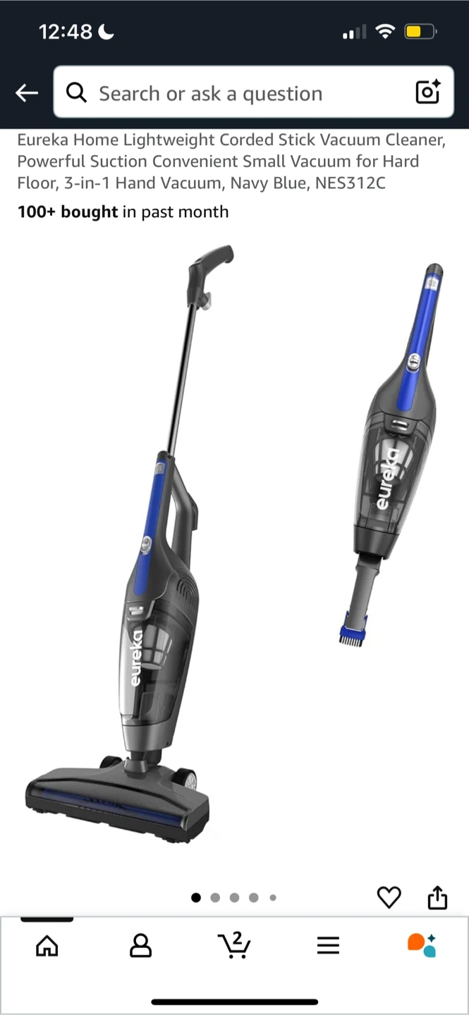 Selling a Eureka Home Lightweight Corded Stick Vacuum Cleaner. It's a powerful suction convenient small vacuum for hard floors. It's navy blue, 3-in-1 hand vacuum, model NES312C.