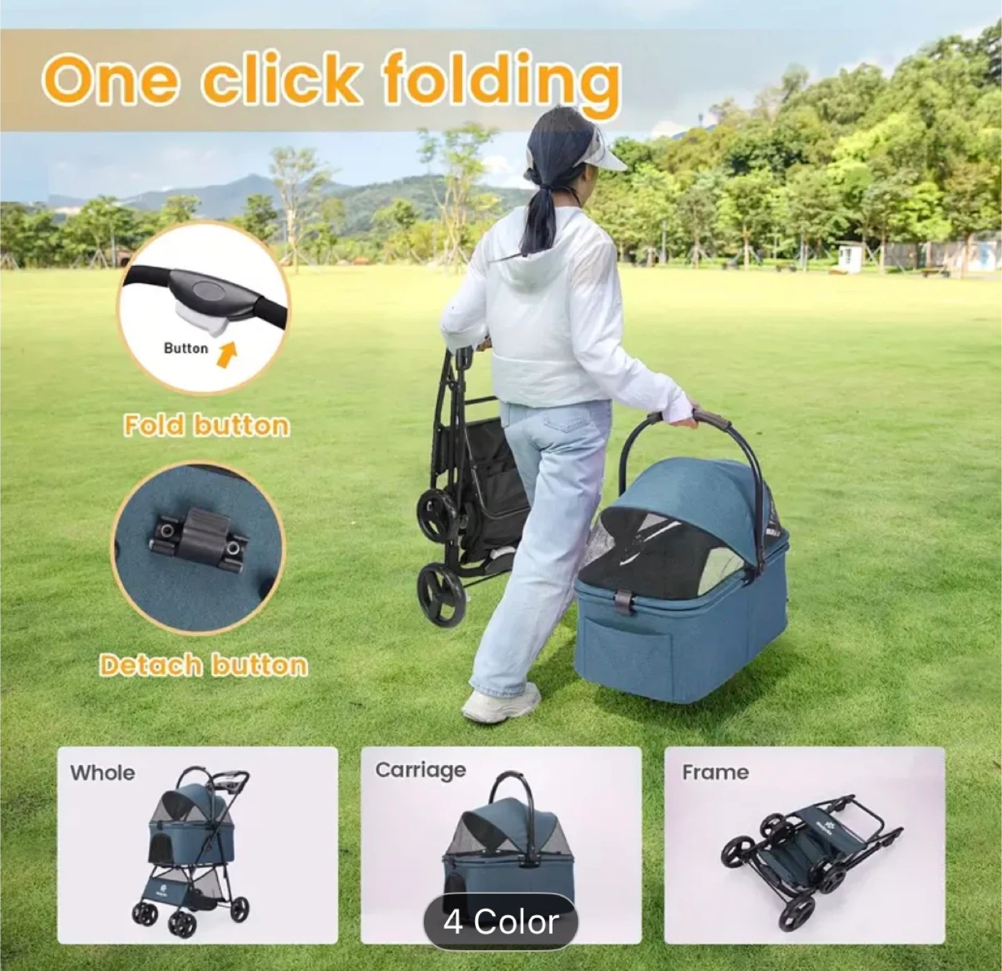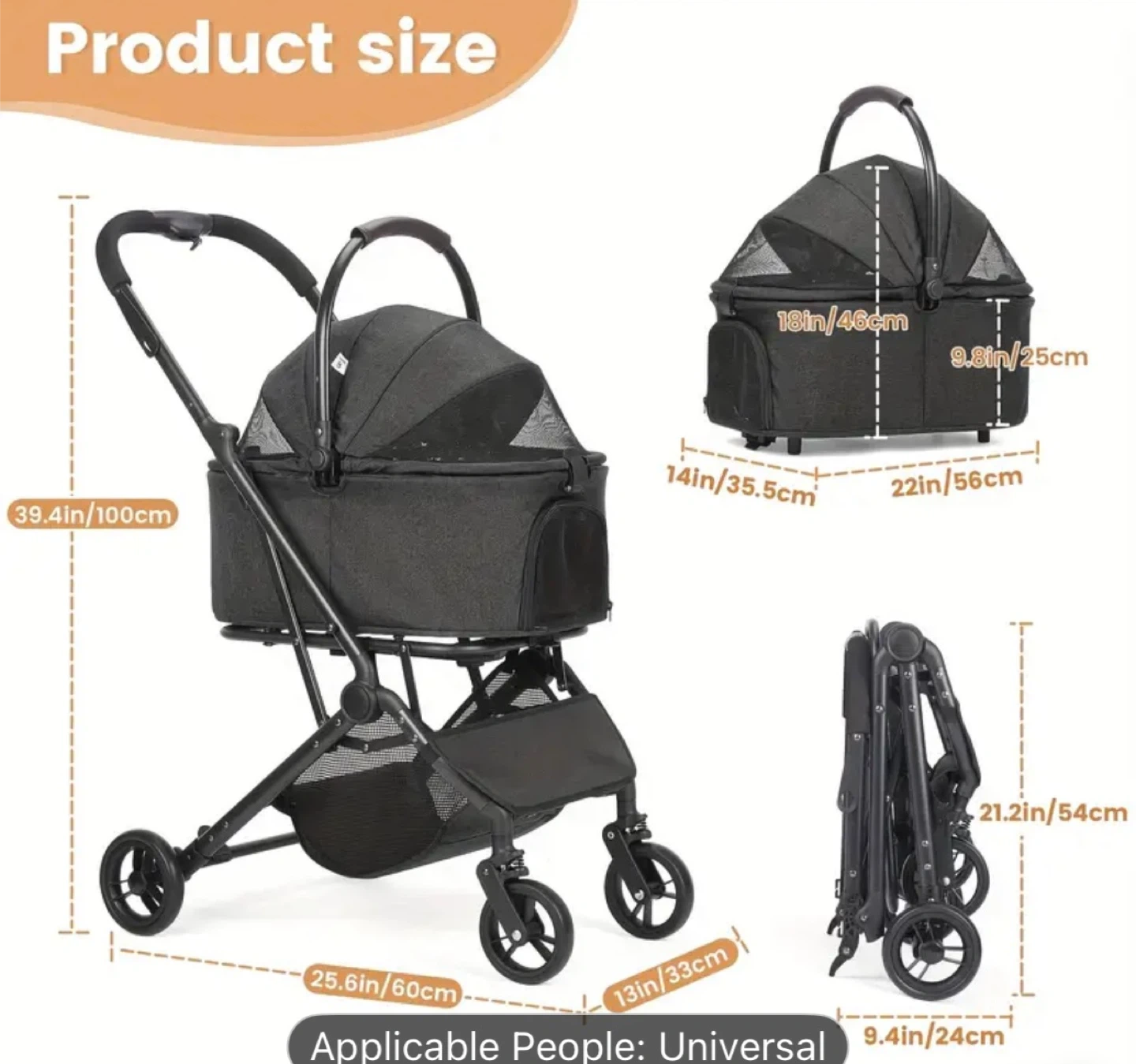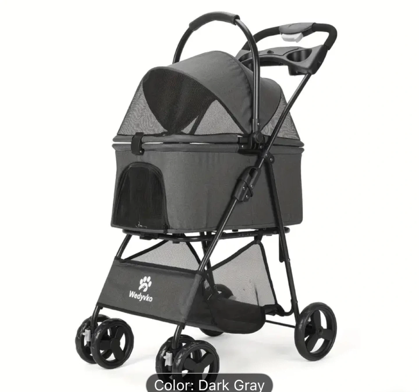 61Looking to sell this Wedyvko pet stroller in dark gray! It's in great condition and perfect for taking your furry friend on walks around the neighbourhood. Key specs: - Dimensions: 39.4in/100cm (height), 25.6in/60cm (length), 13in/33cm (width) - Folded dimensions: 21.2in/54cm (height), 9.4in/24cm (length) Selling points: - One-click folding for easy storage and transport