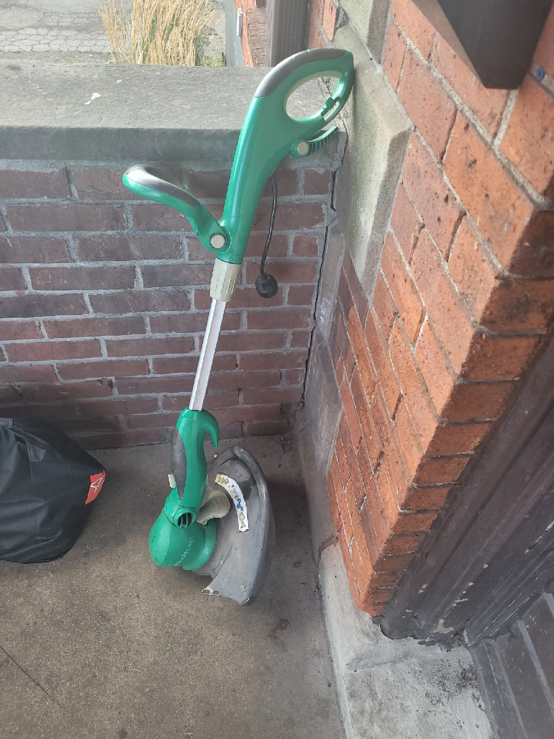 Selling a used Weed Eater electric grass trimmer. It's green and still works well for trimming your lawn edges
