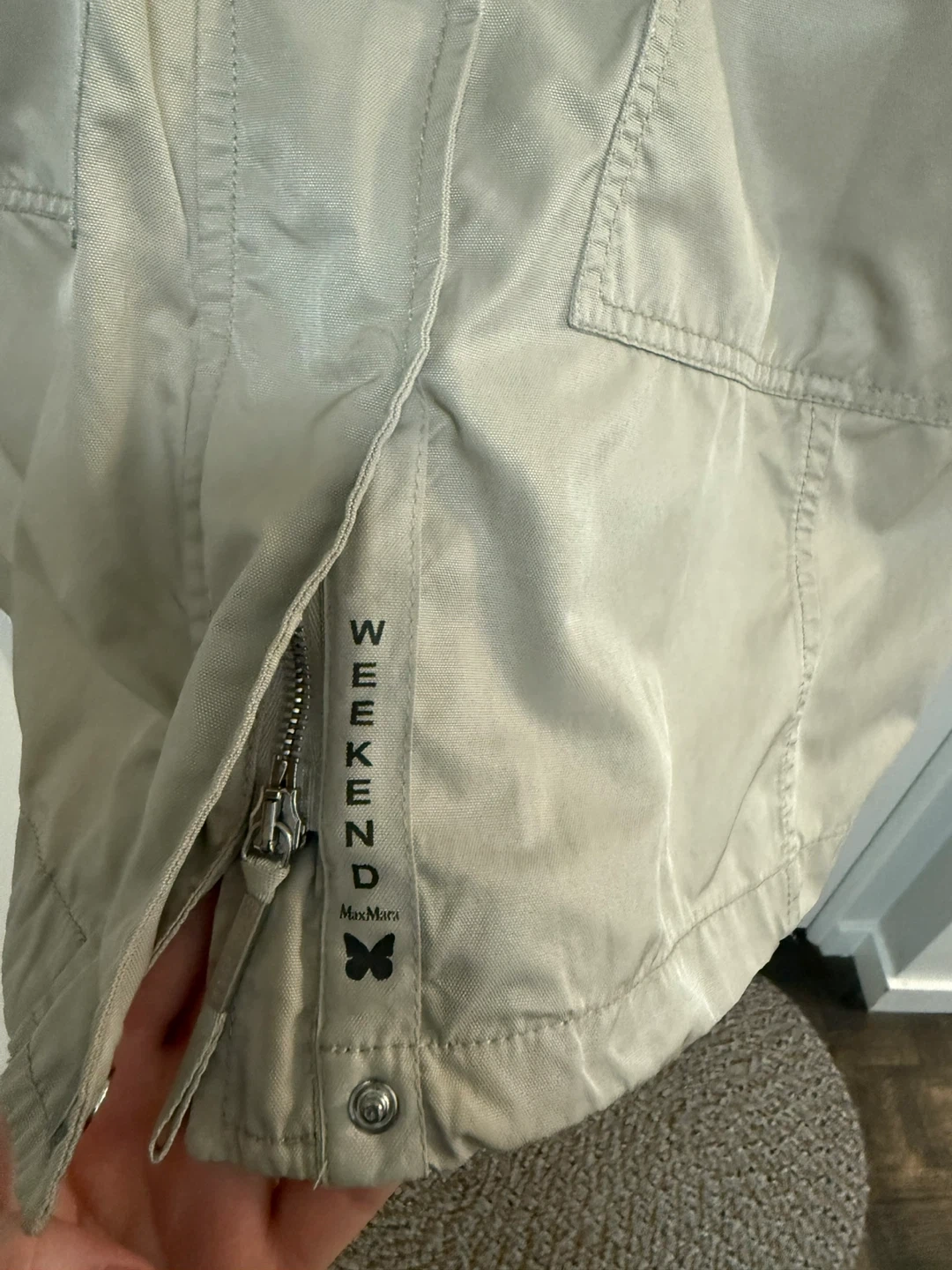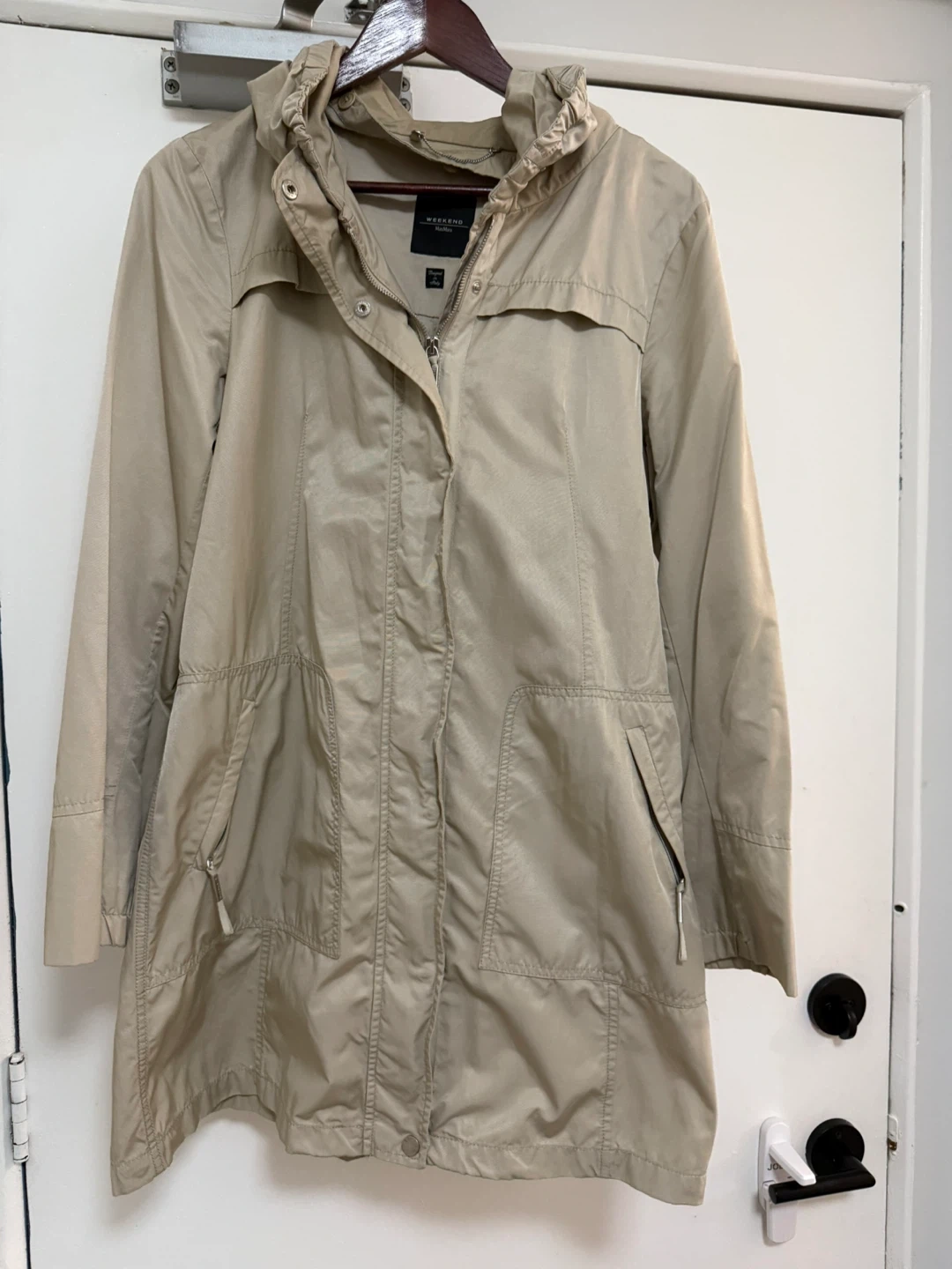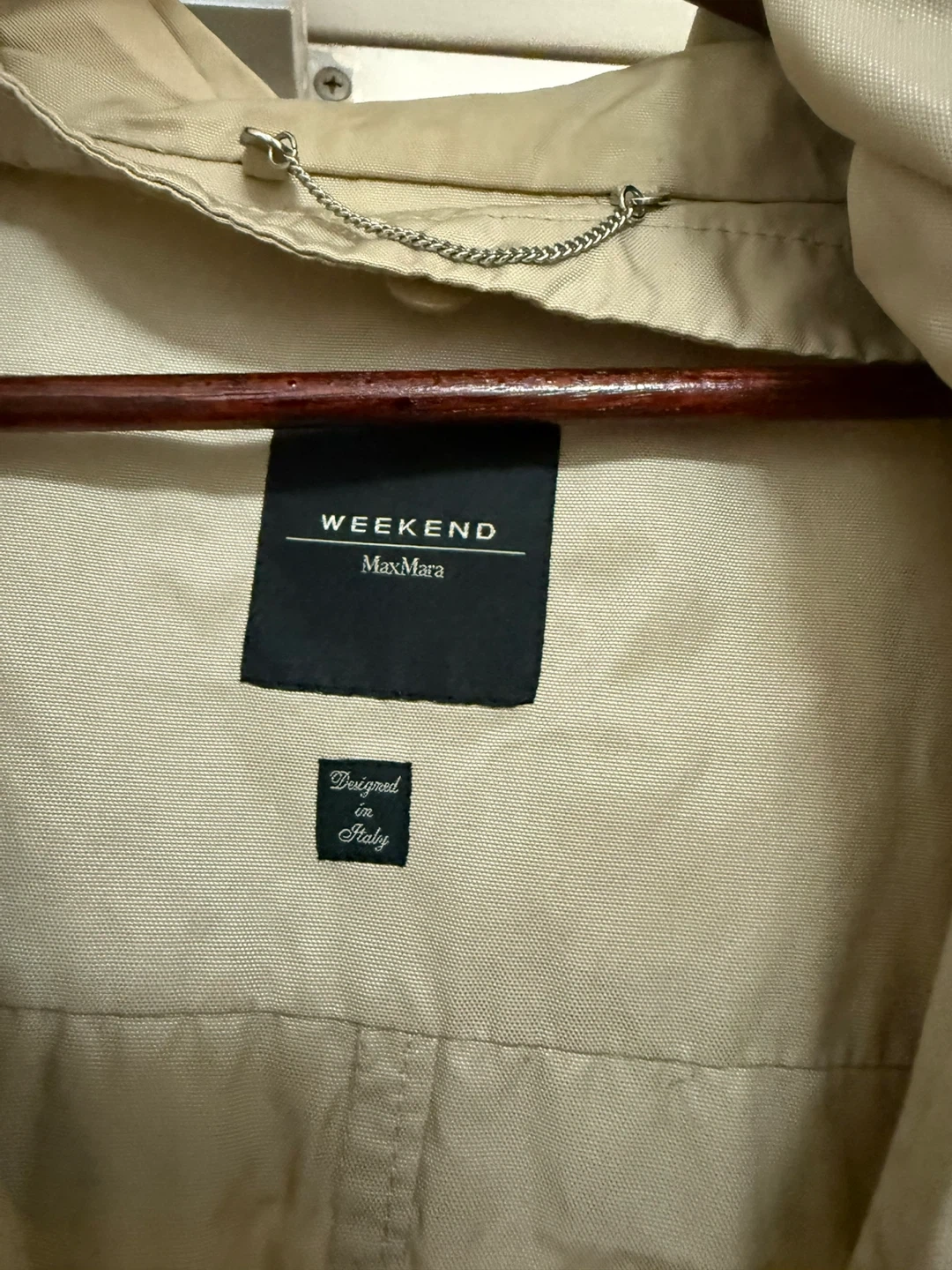 Weekend MaxMara hooded coat in a lovely beige colour. It's in great condition and perfect for those in-between weather days. Stylish and functional!