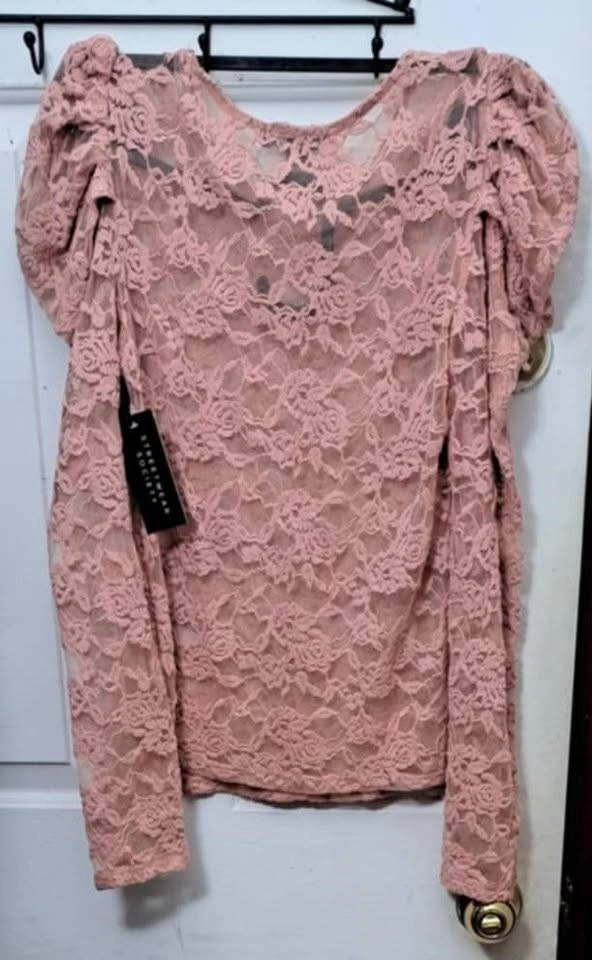 Trendy: New Coquette Aesthetic Pink Floral Lace Sheer Top M/LP🥕