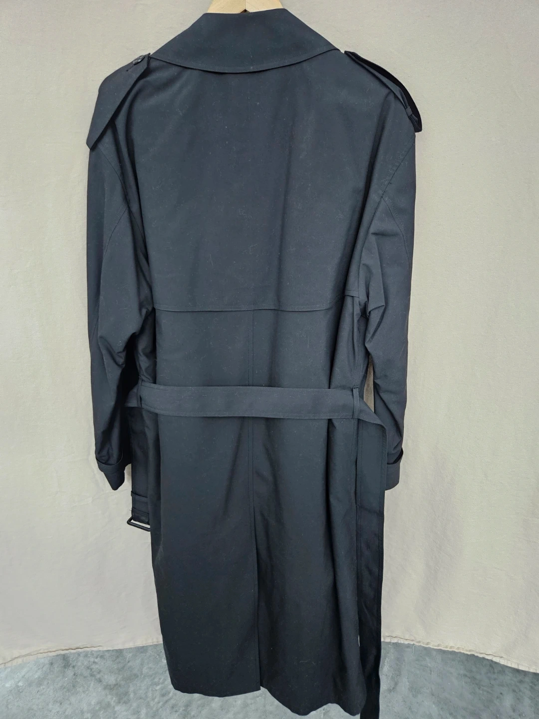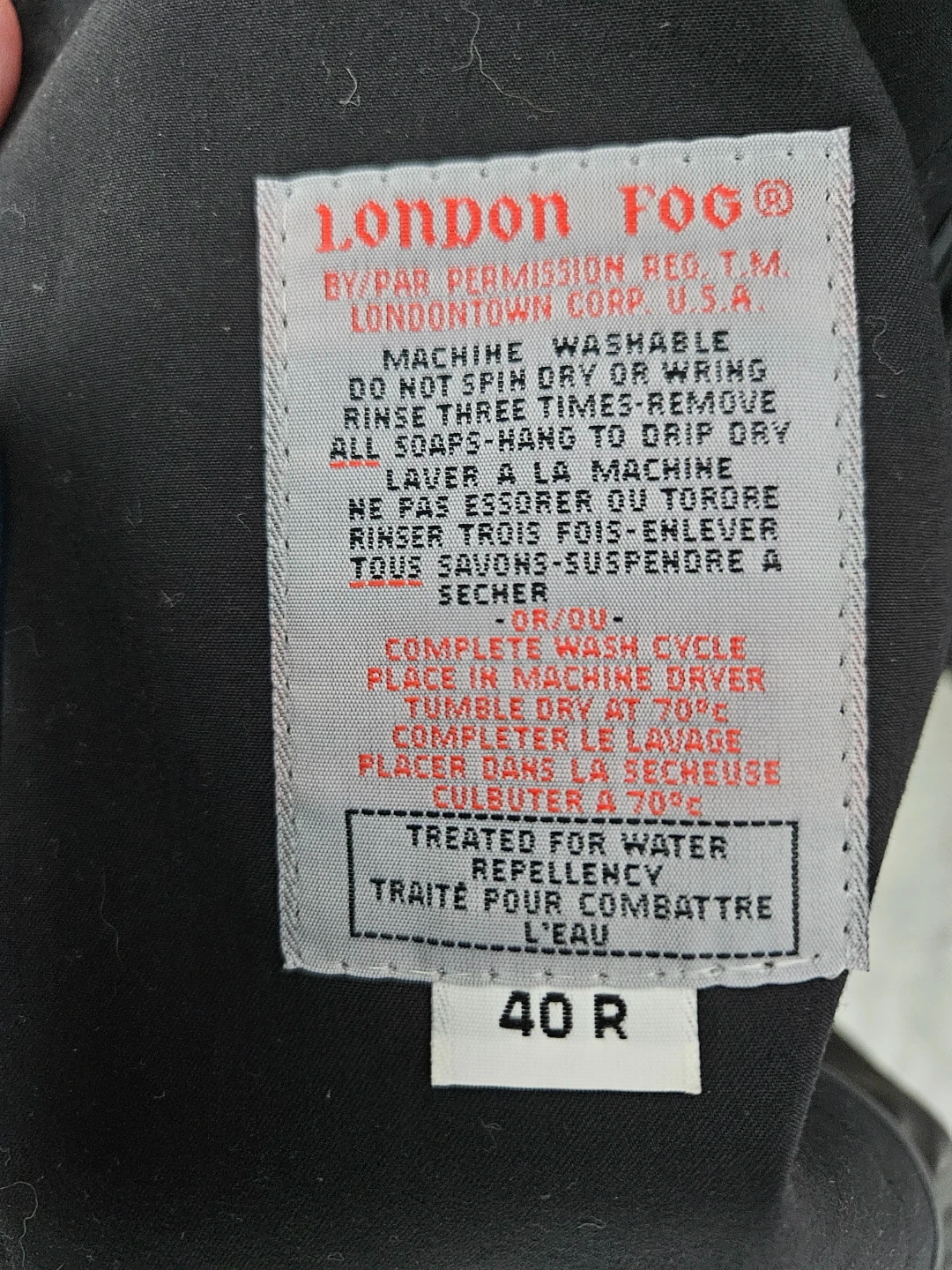 Like new - Classic black London Fog trench coat. Treated for water repellency. Machine washable for easy care.