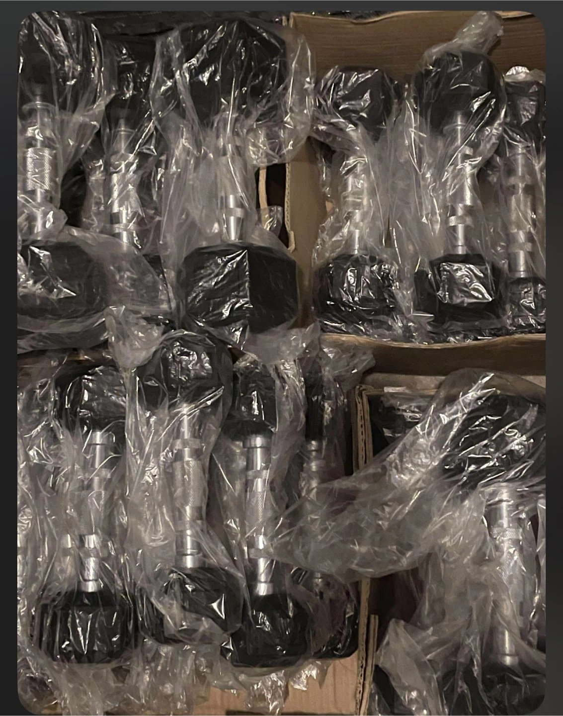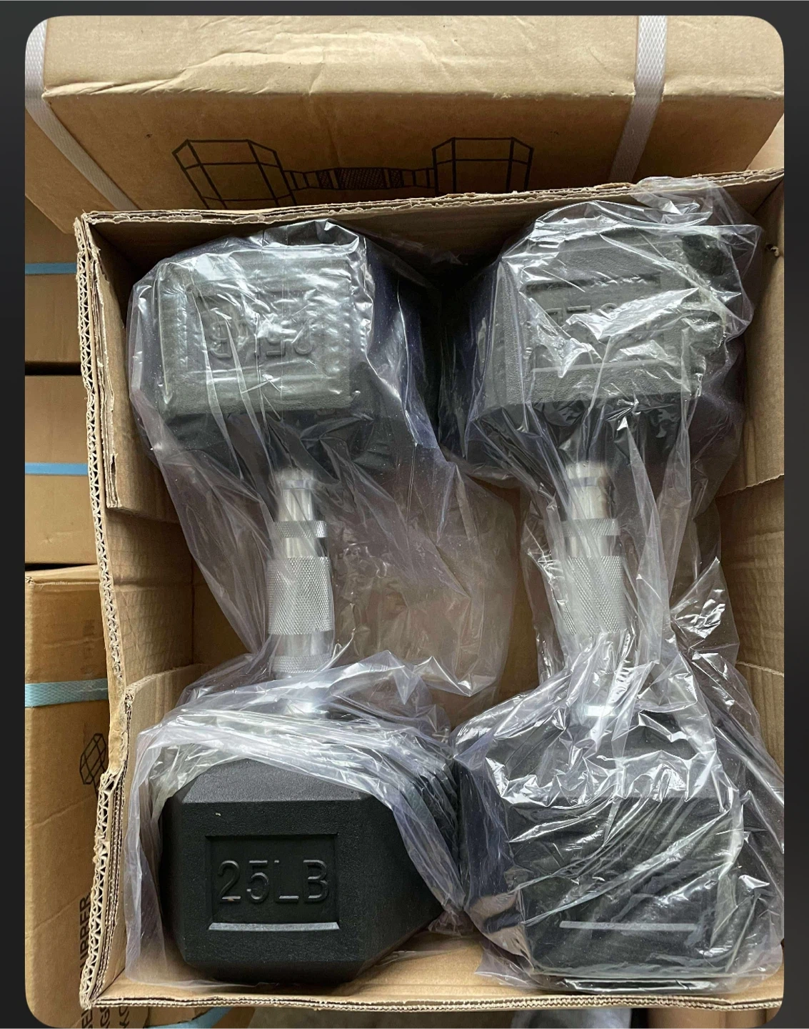 10Everything brand new in box Add the total of the weight that you are interested in and multiplied by 1.3 To get the total final price at pick up Message to see if your dumbbell pairs are in stock 5lb to 100lb Weight plates in stock ranging from 2.5-5-10-25-35-45 Barbells are also in stock 5 feet 6 feet 7 feet