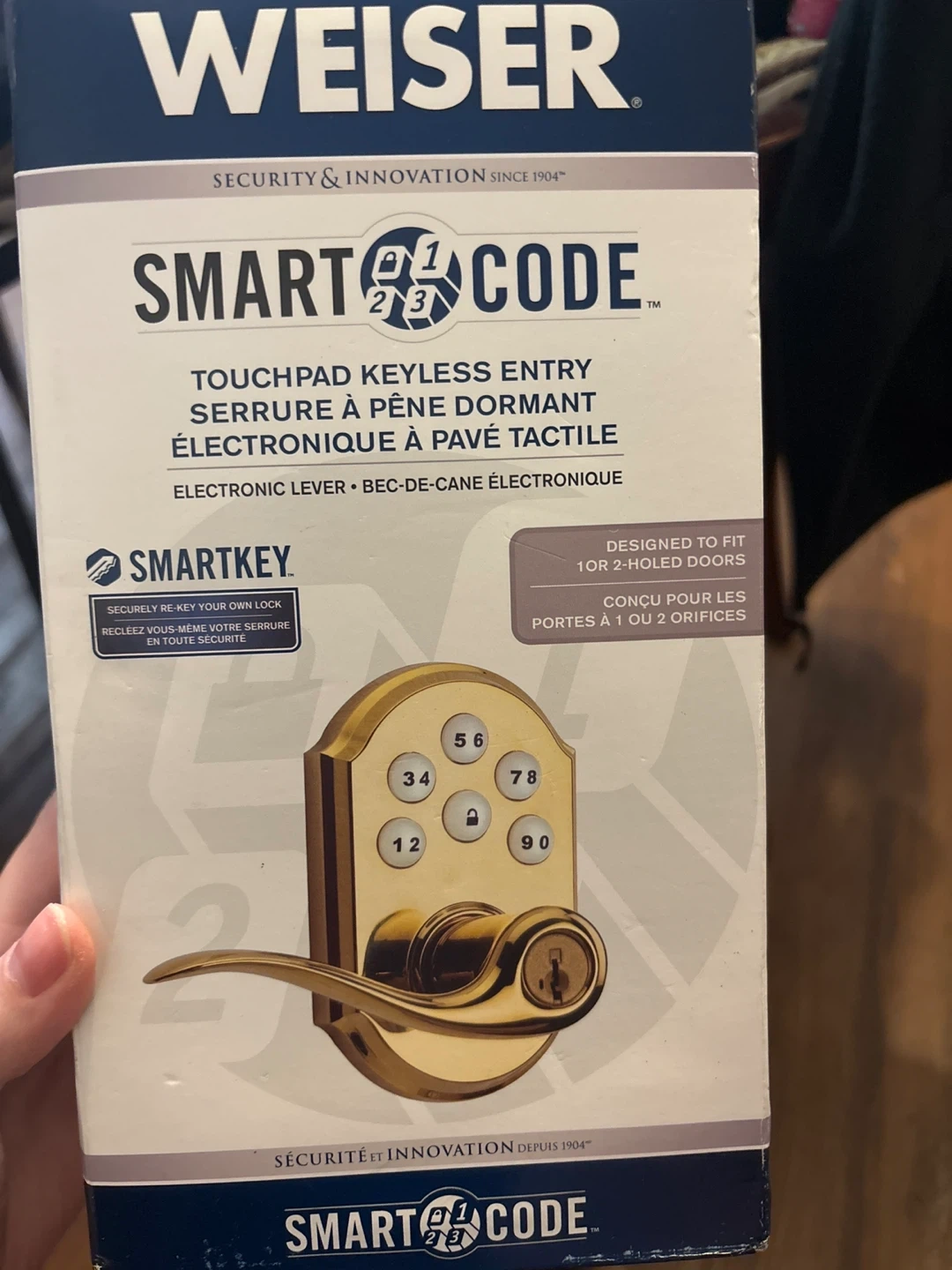 73Selling a Weiser Smartcode Touchpad Keyless Entry system! It's designed to fit 1 or 2-holed doors and includes Smartkey technology to securely re-key your own lock. Box is included